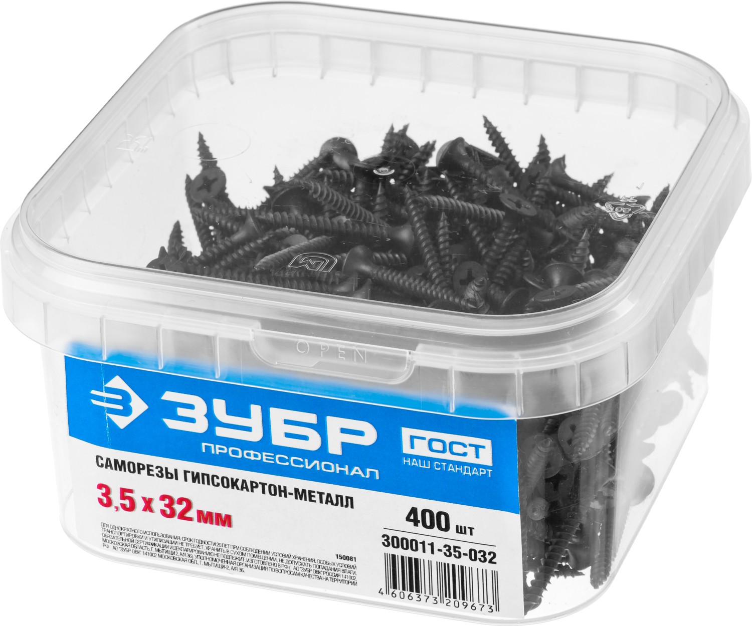 ЗУБР СГМ, 32 х 3.5 мм, фосфатированное покрытие, 400 шт (0,57 кг.), саморез гипсокартон-металл, Профессионал (300011-35-032)