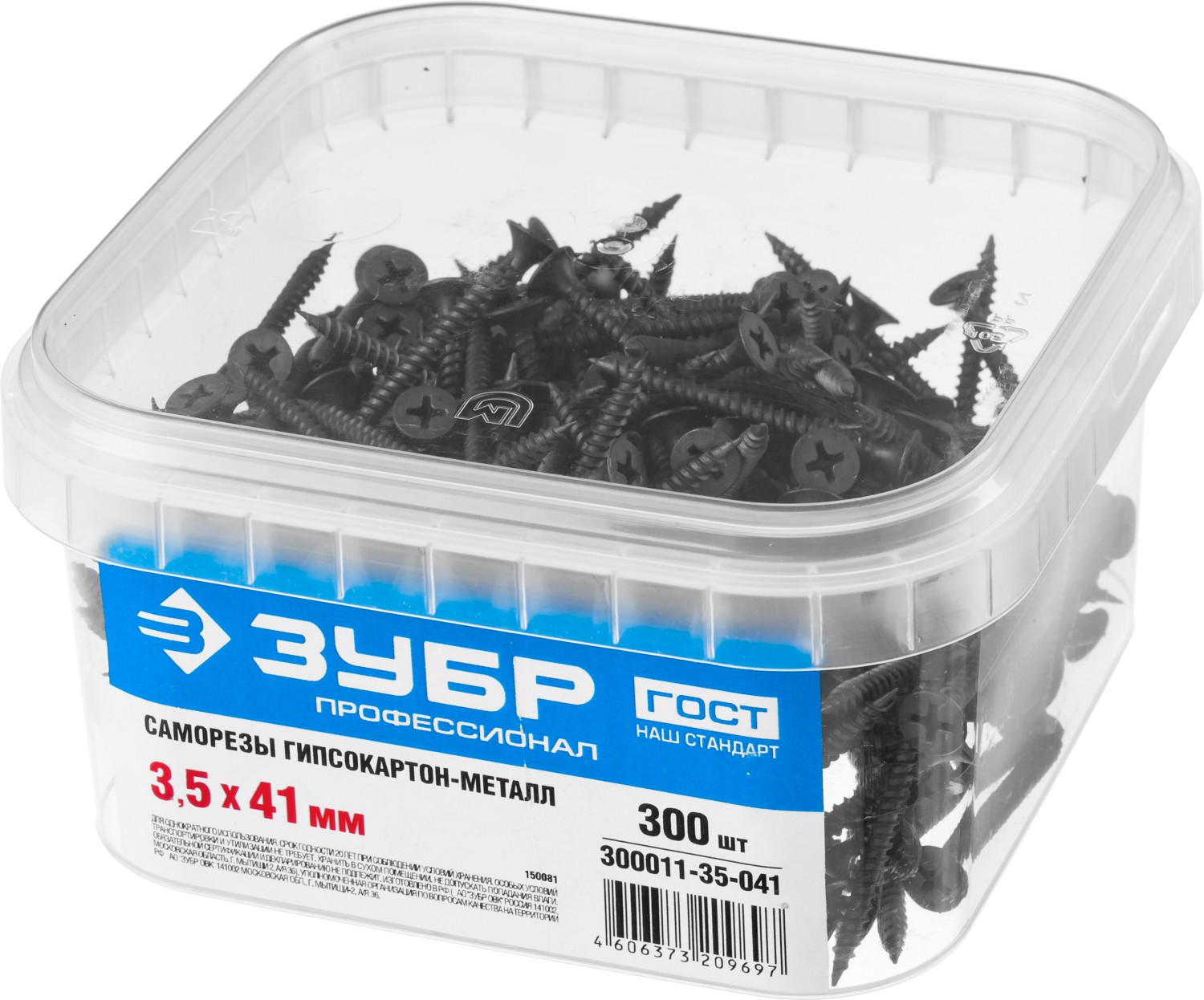 ЗУБР СГМ, 41 х 3.5 мм, фосфатированное покрытие, 300 шт (0,51 кг.), саморез гипсокартон-металл, Профессионал (300011-35-041)