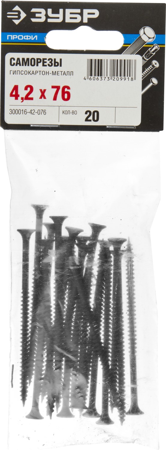 ЗУБР СГМ, 76 х 4.2 мм, фосфатированное покрытие, 20 шт, саморез гипсокартон-металл, Профессионал (300016-42-076)
