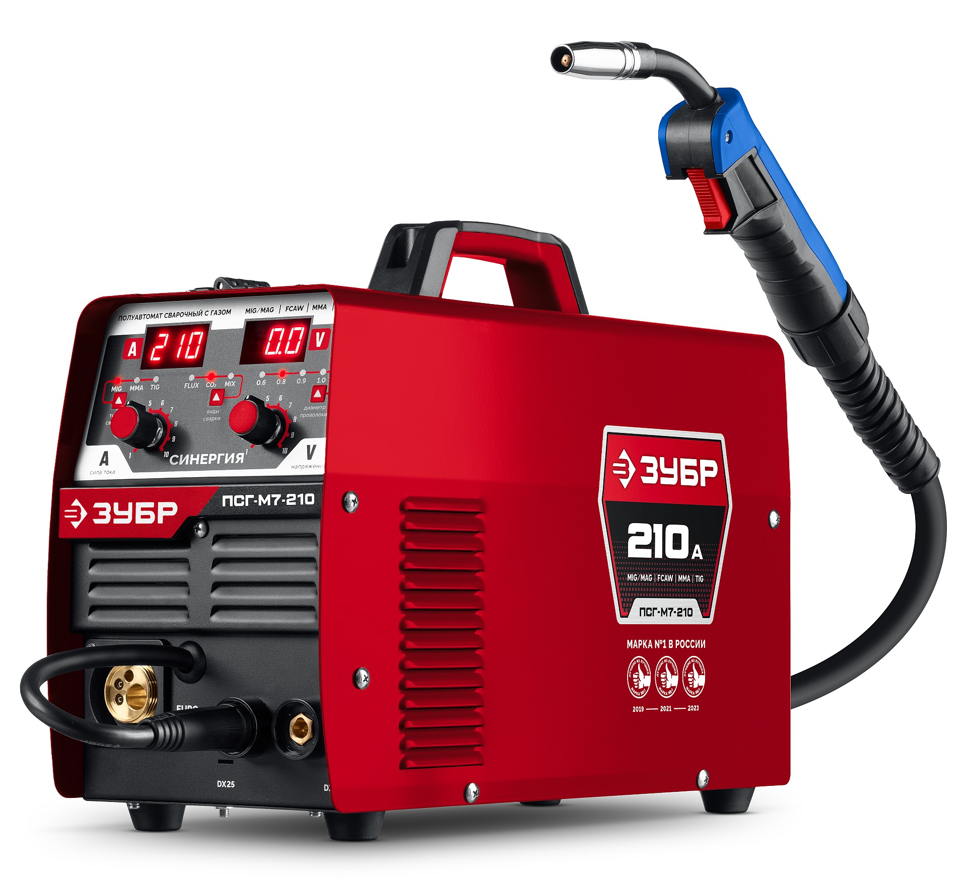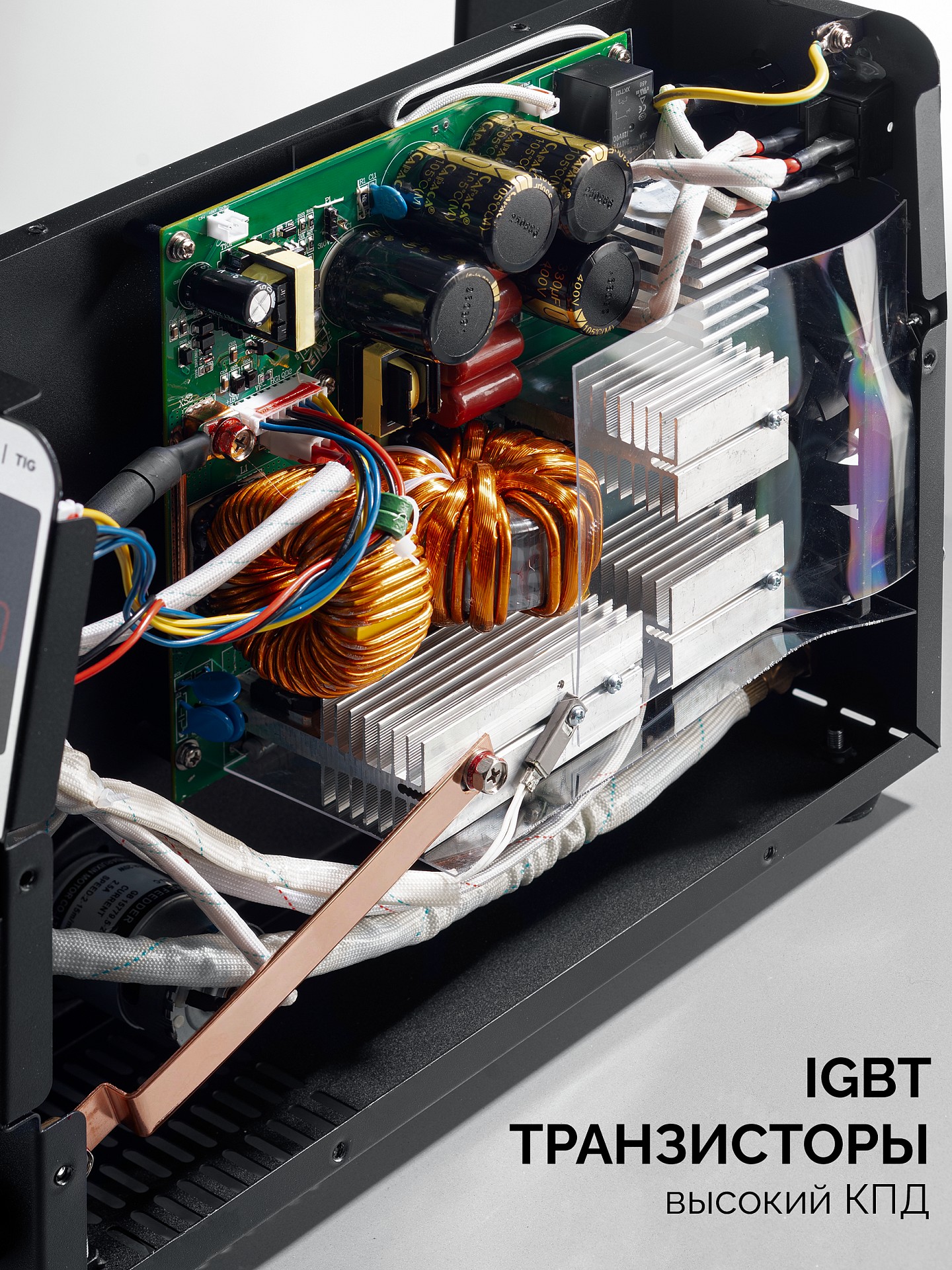 Универсальный сварочный полуавтомат инверторного типа с синергетическим управлением, цифровым дисплеем и функциями MMA и TIG сварки, позволяющий производить качественную и комфортную сварку сталей как в среде защитного газа, так и самозащитной порошковой проволокой без газа, сварку штучными покрытыми электродами и сварку неплавящимся электродом в среде инертного газа. Современные электронные компоненты, автоматический подбор сварочных параметров позволят с легкостью провести все необходимые сварочные работы в быту, автомастерской или на стройплощадке.
