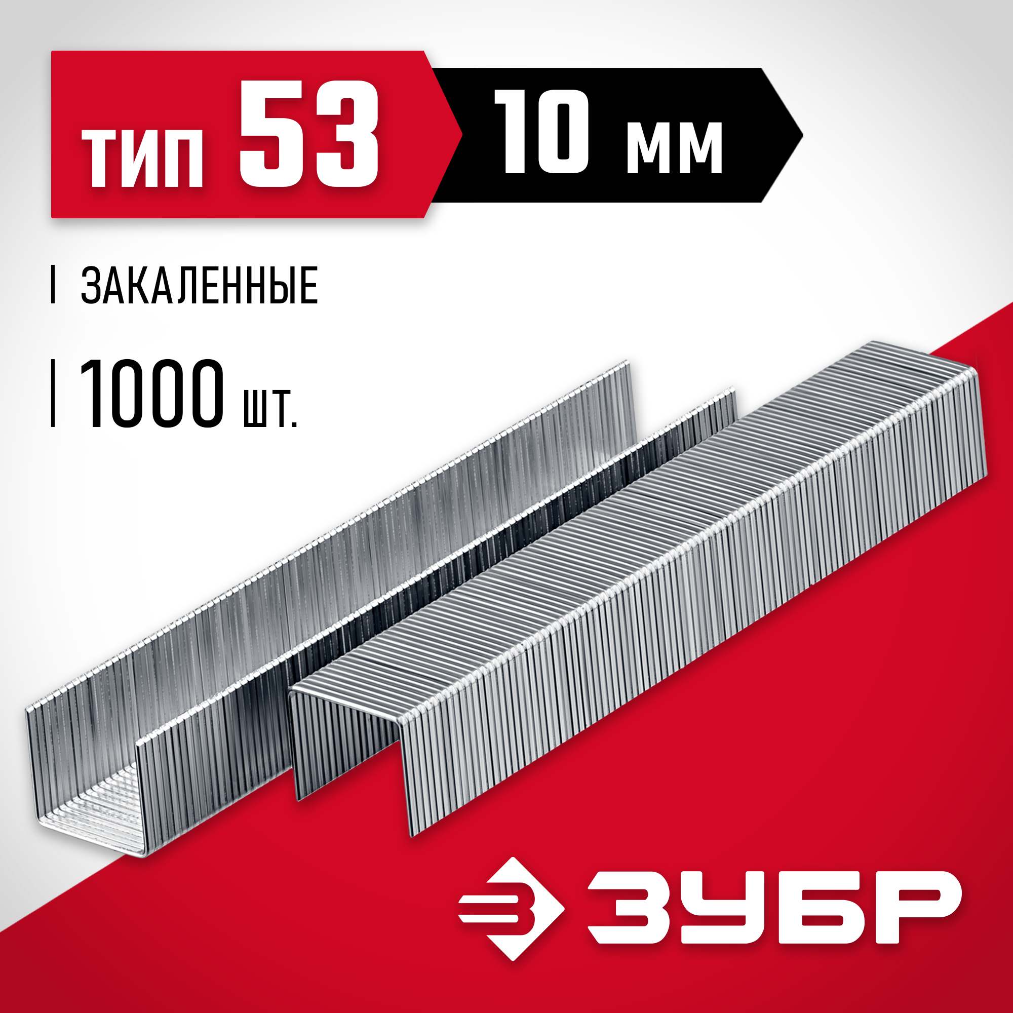 ЗУБР скобы тип 53 (A/10/JT21), 10 мм, калибр 23GA. 1000 шт (31625-10)