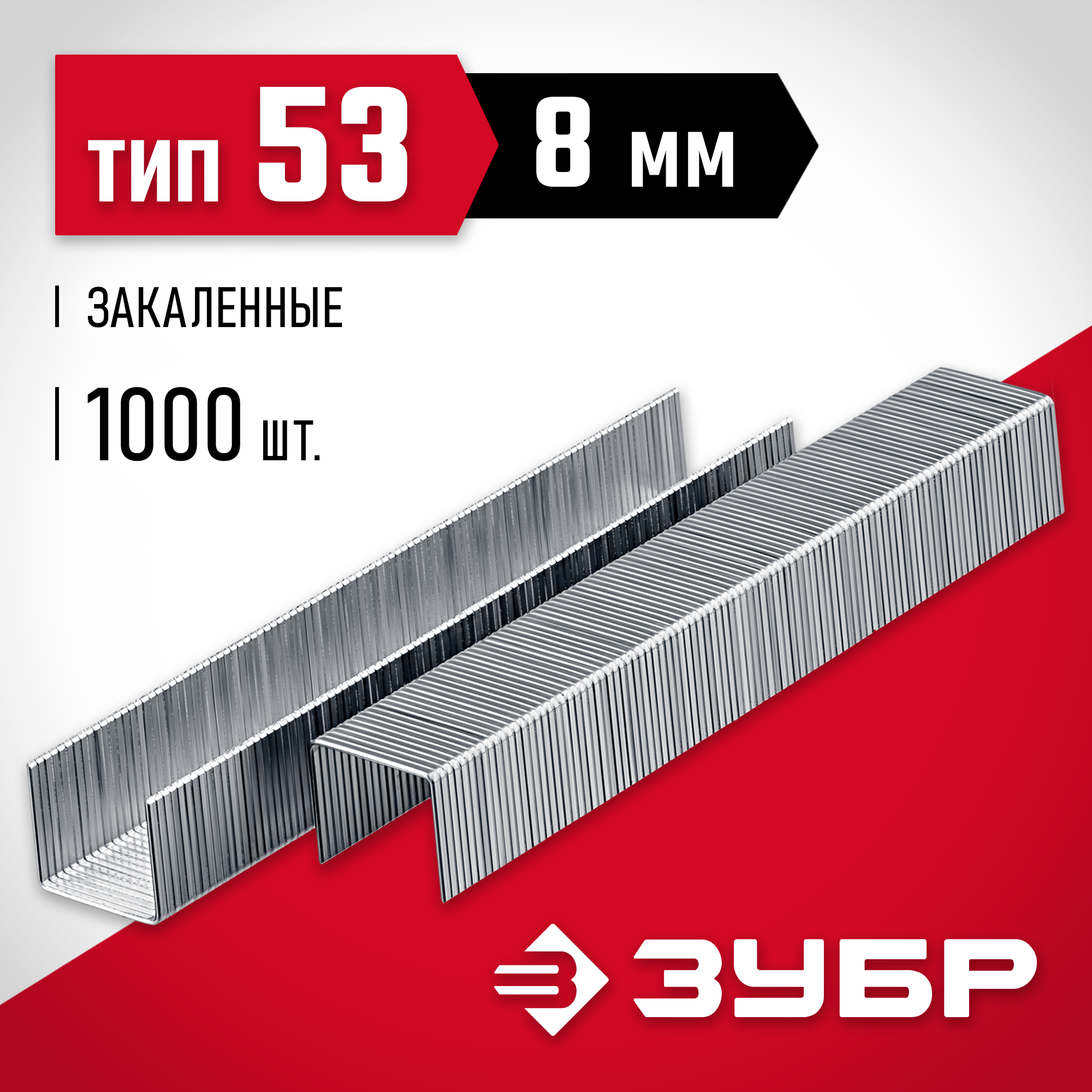 ЗУБР скобы тип 53 (A/10/JT21), 8 мм, калибр 23GA. 1000 шт (31625-08)
