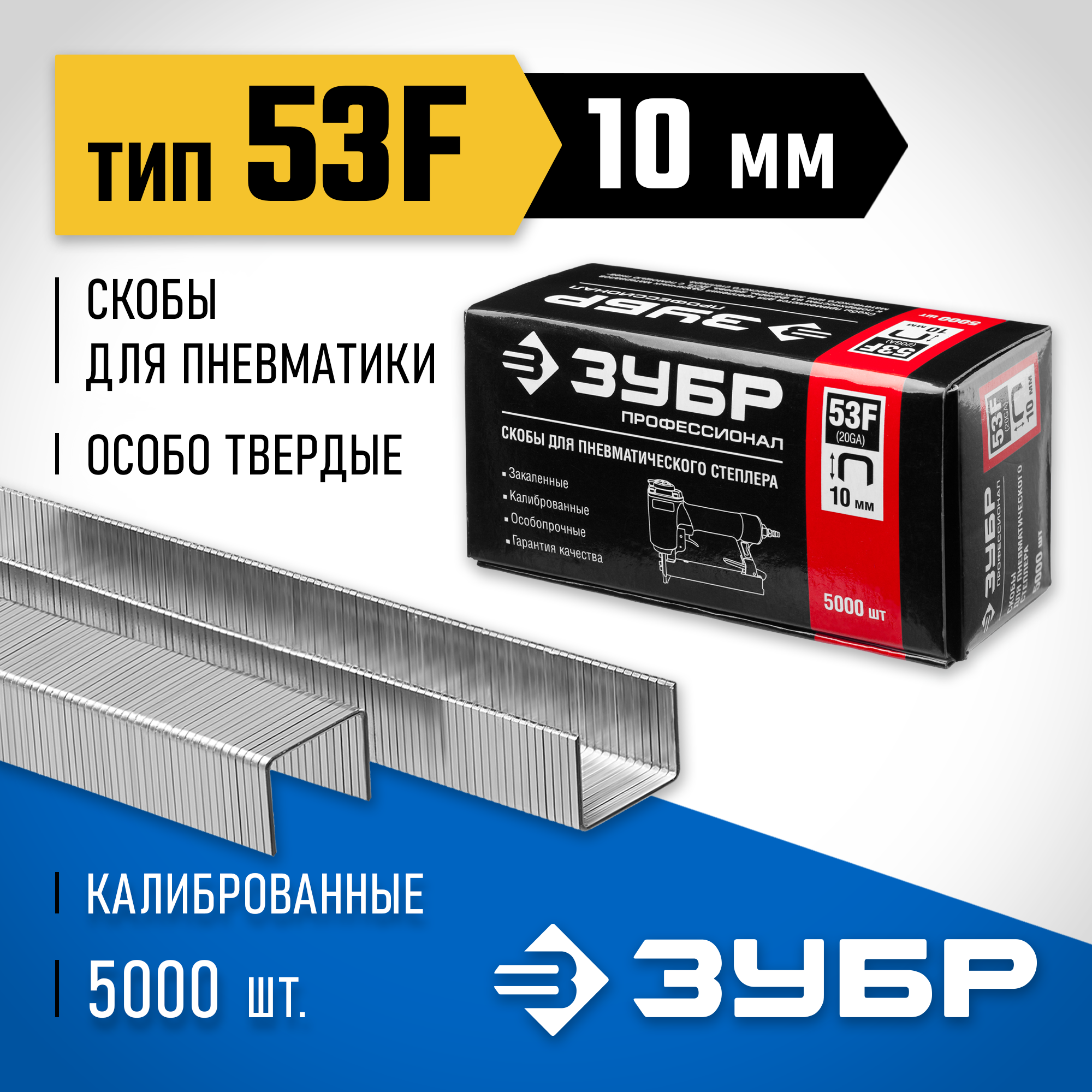 ЗУБР скобы тип 53F (D/056), 10 мм, калибр 23GA. 5000 шт. Профессионал (31950-10)