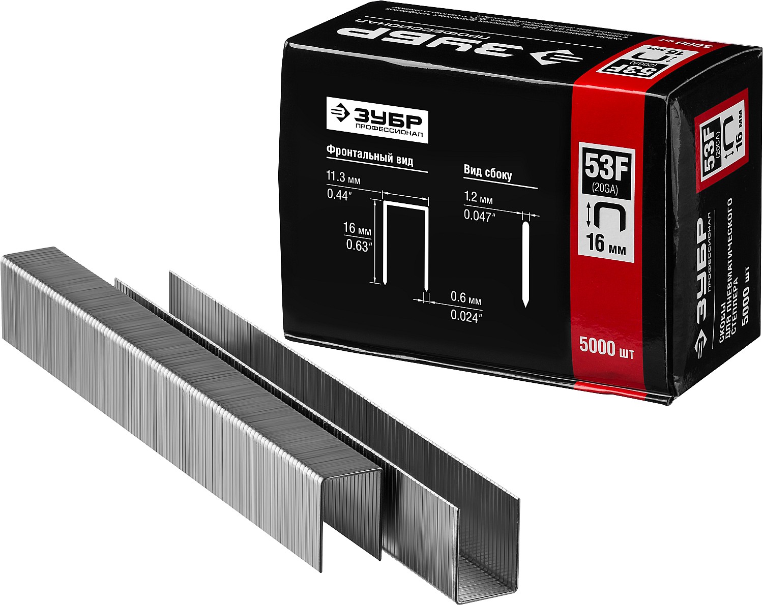 ЗУБР скобы тип 53F (D/056), 16 мм, калибр 23GA. 5000 шт. Профессионал (31950-16)