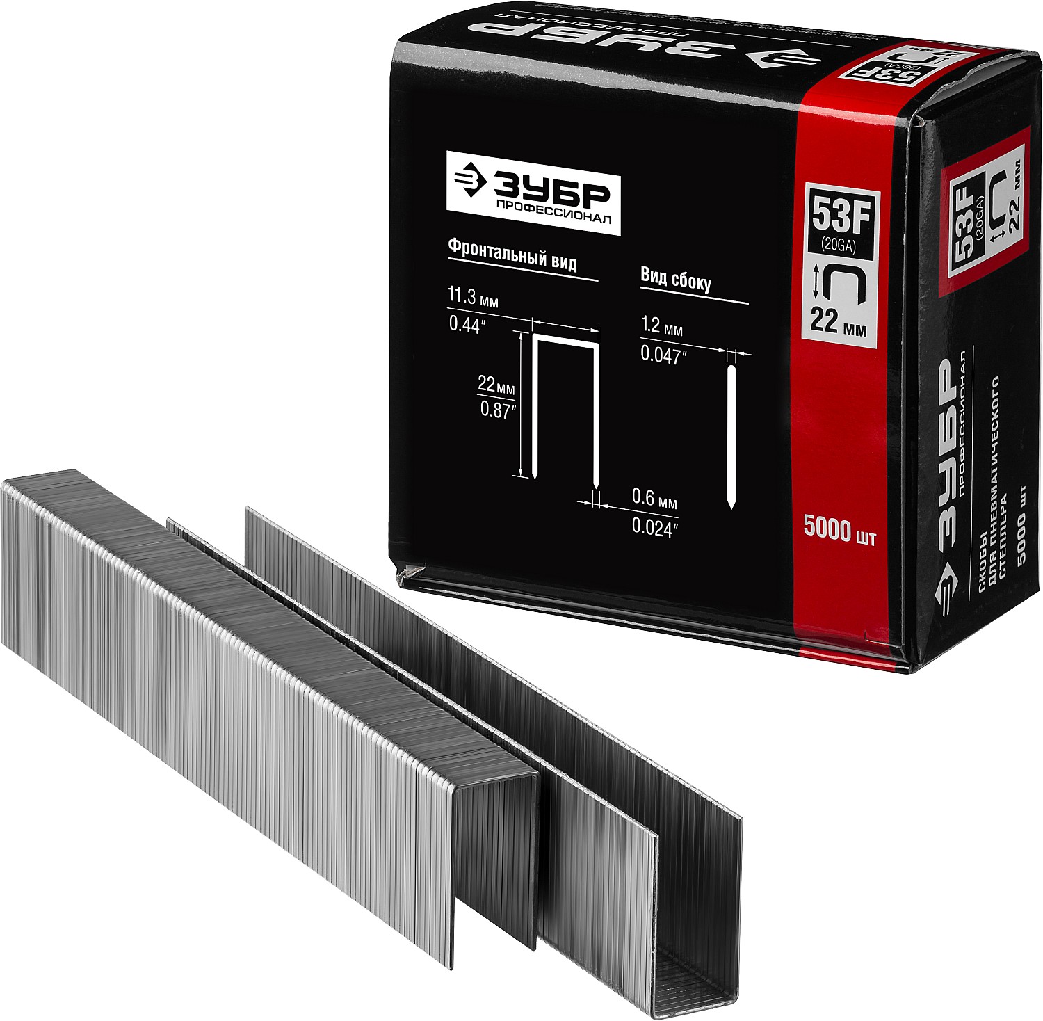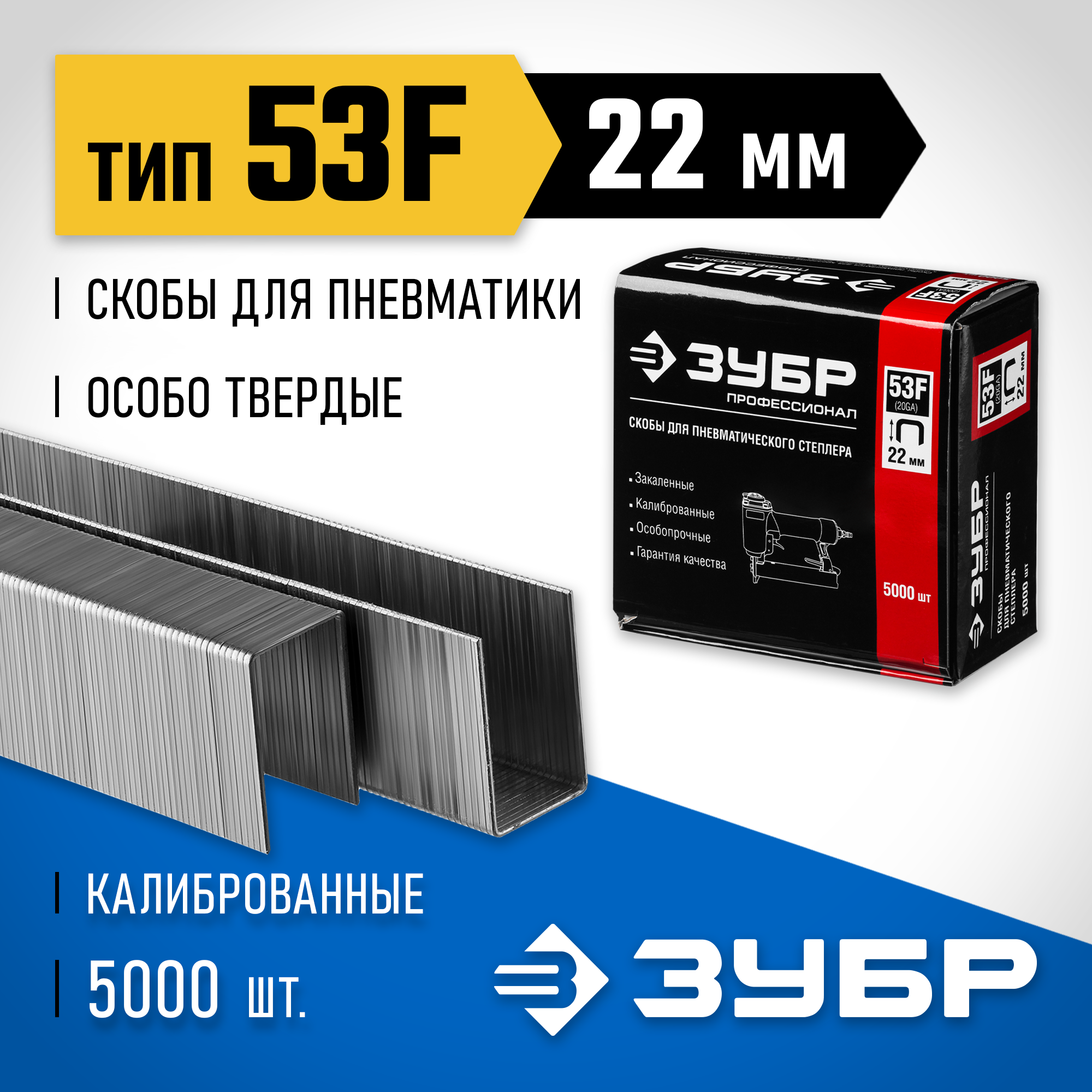 ЗУБР скобы тип 53F (D/056), 22 мм, калибр 23GA. 5000 шт. Профессионал (31950-22)