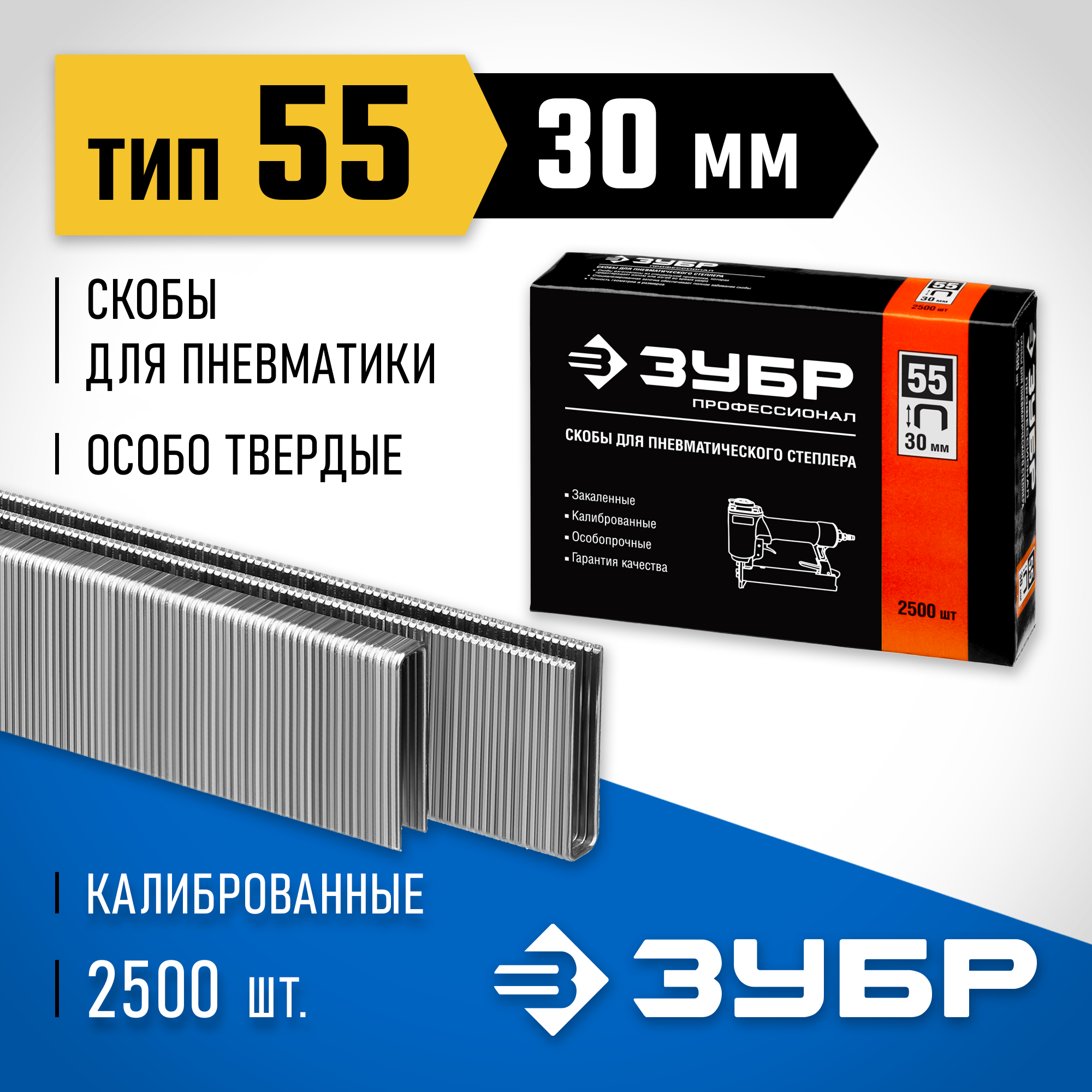 ЗУБР скобы тип 55 (90/C), 30 мм, калибр 18GA. 2500 шт. Профессионал (31855-30)