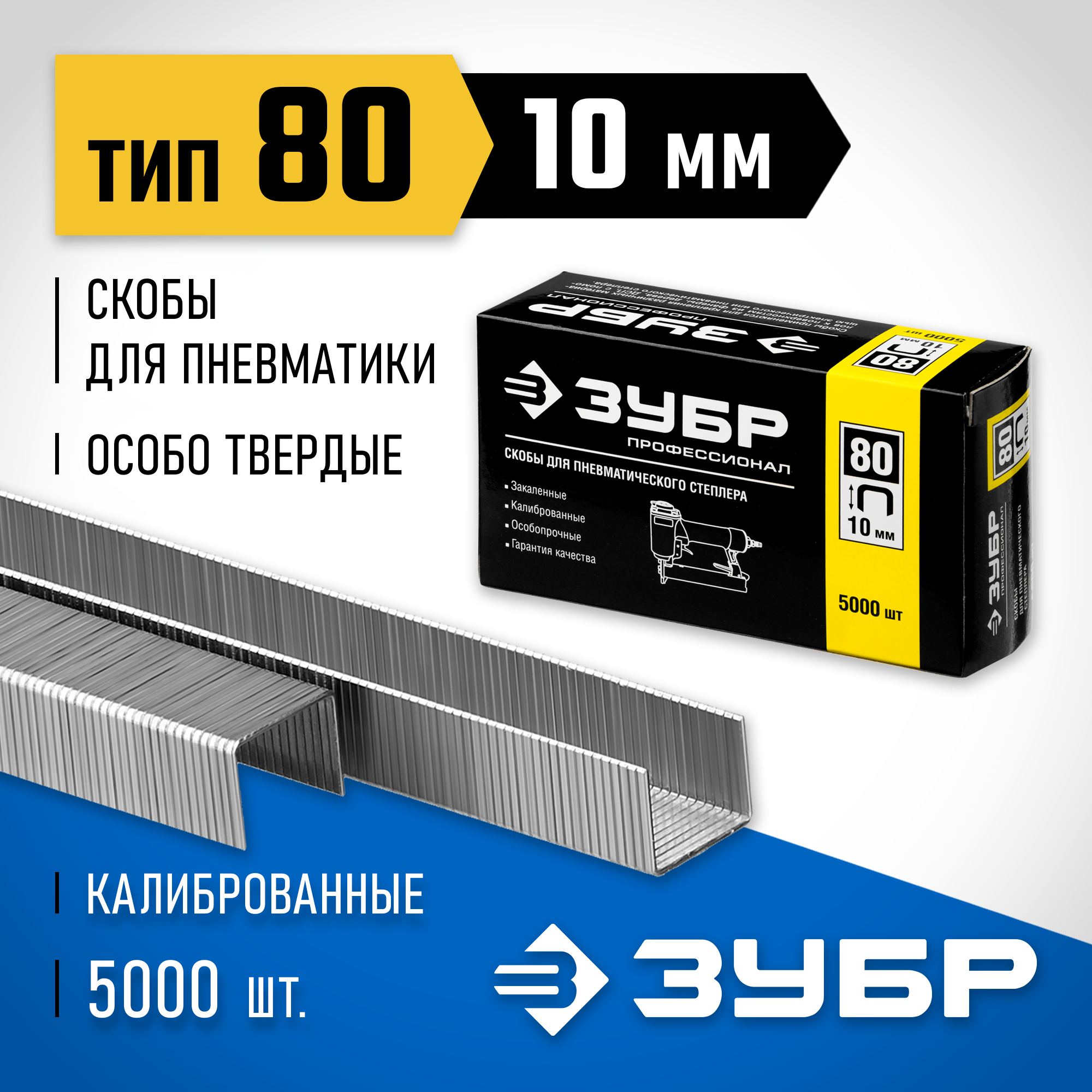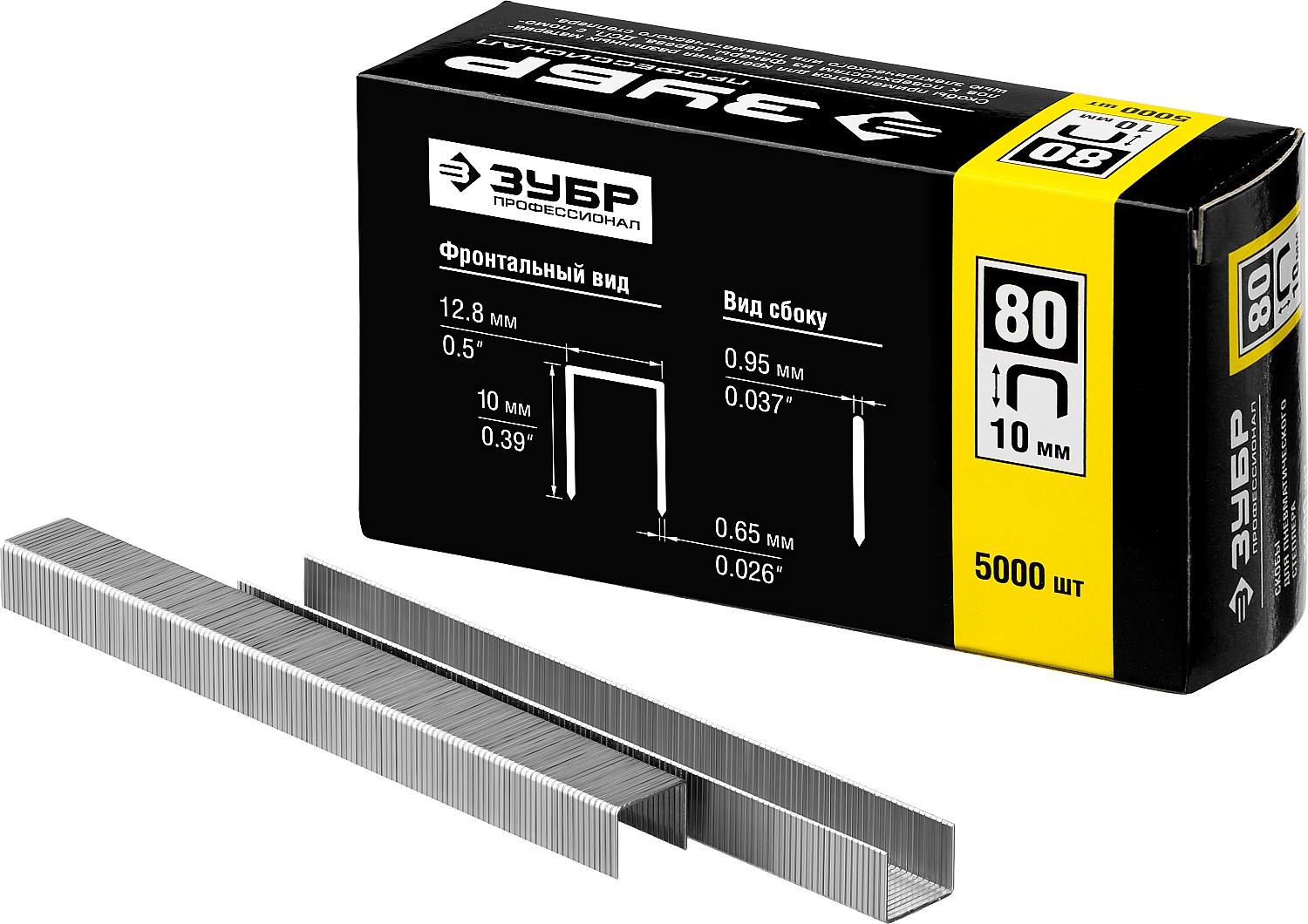 ЗУБР скобы тип 80 (BeA/Prebena A/Senco AT), 10 мм, калибр 21GA. 5000 шт. Профессионал (31880-10)