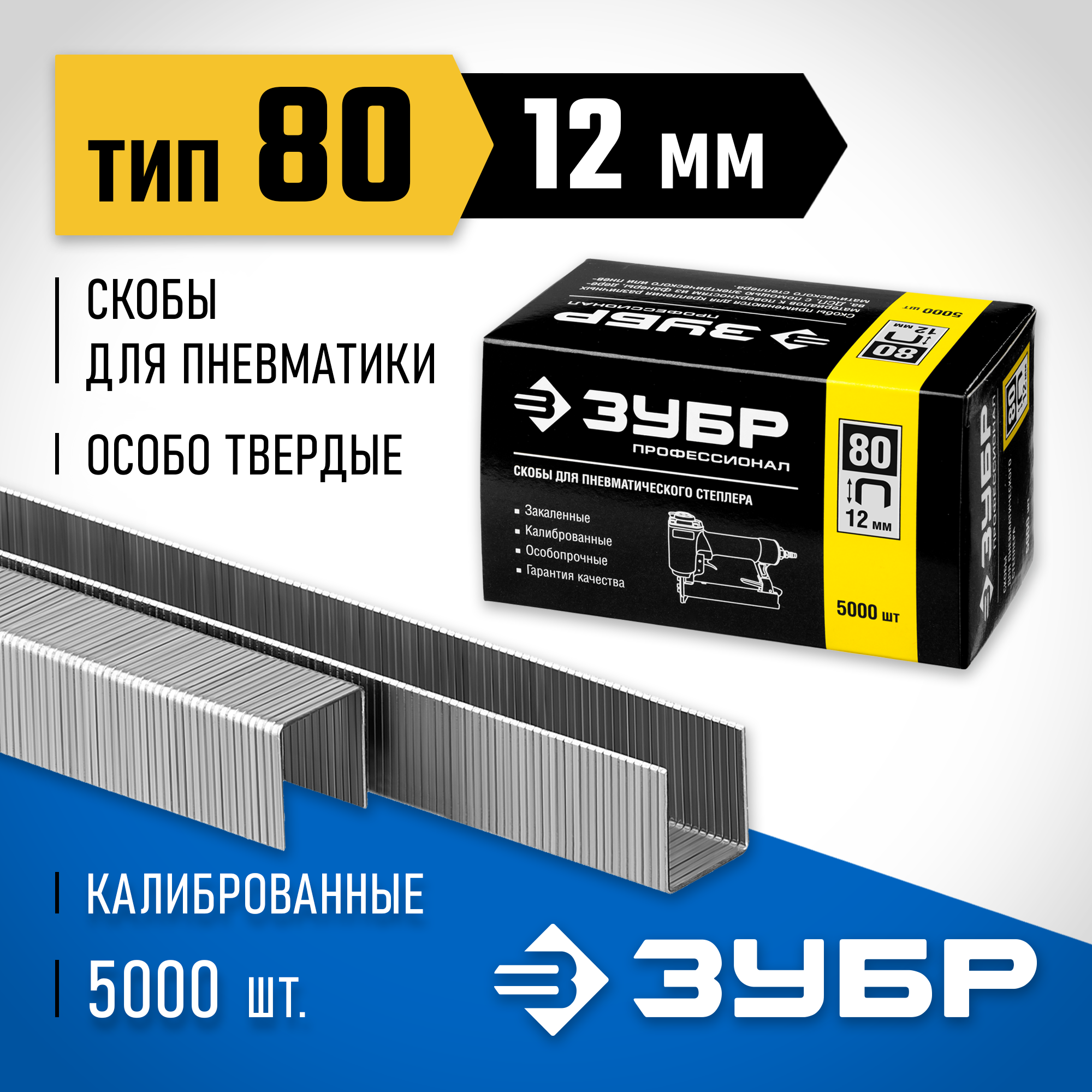 ЗУБР скобы тип 80 (BeA/Prebena A/Senco AT), 12 мм, калибр 21GA. 5000 шт. Профессионал (31880-12)