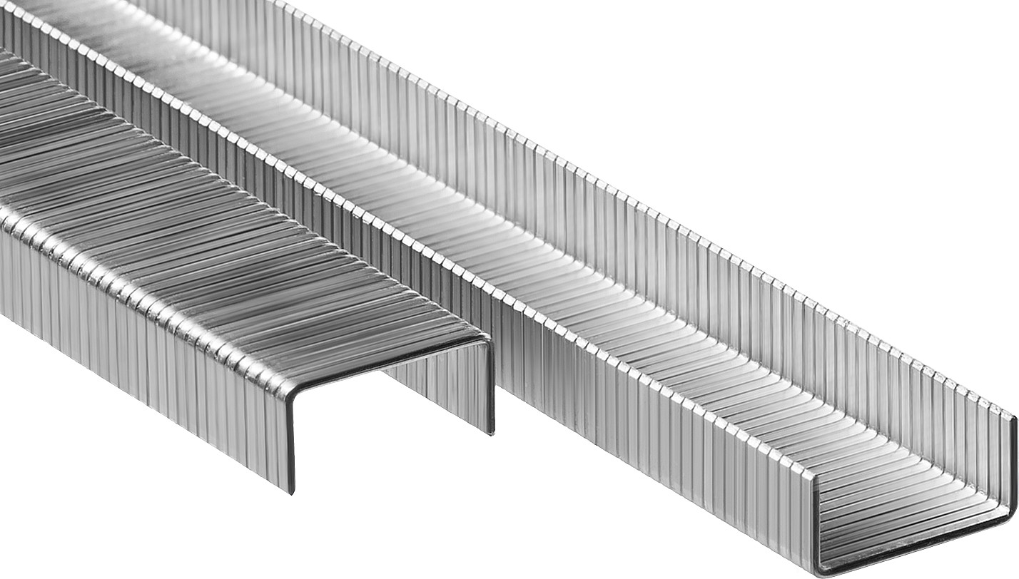 • Скобы с узкой спинкой не повреждают прикрепляемый материал и практически незаметны после установки,