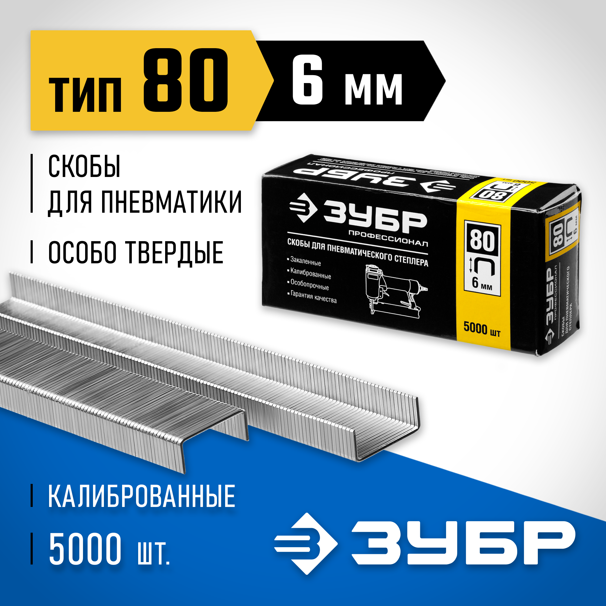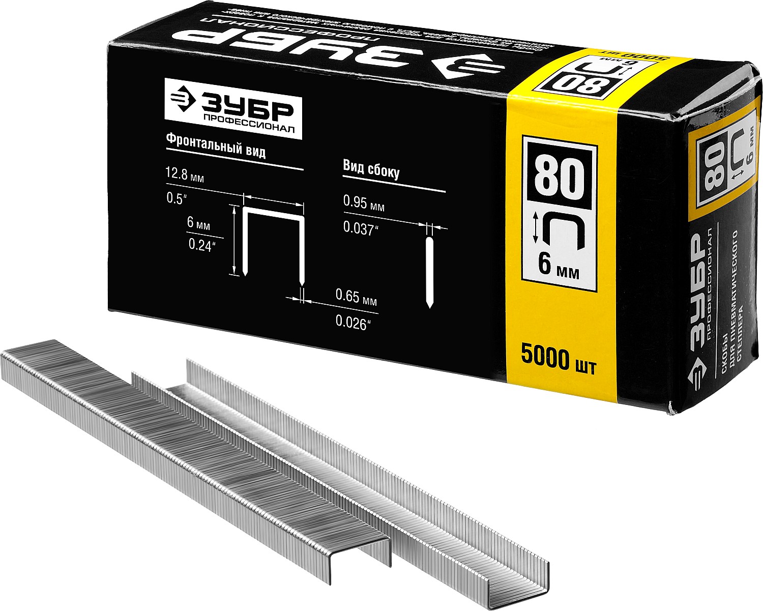 ЗУБР скобы тип 80 (BeA/Prebena A/Senco AT), 6 мм, калибр 21GA. 5000 шт. Профессионал (31880-06)
