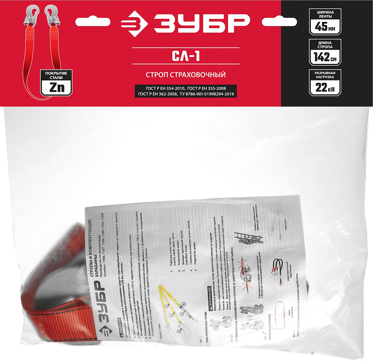 ЗУБР СЛ-1 карабины из оцинкованной стали, длина - 1.42м, одноплечный строп (11589)