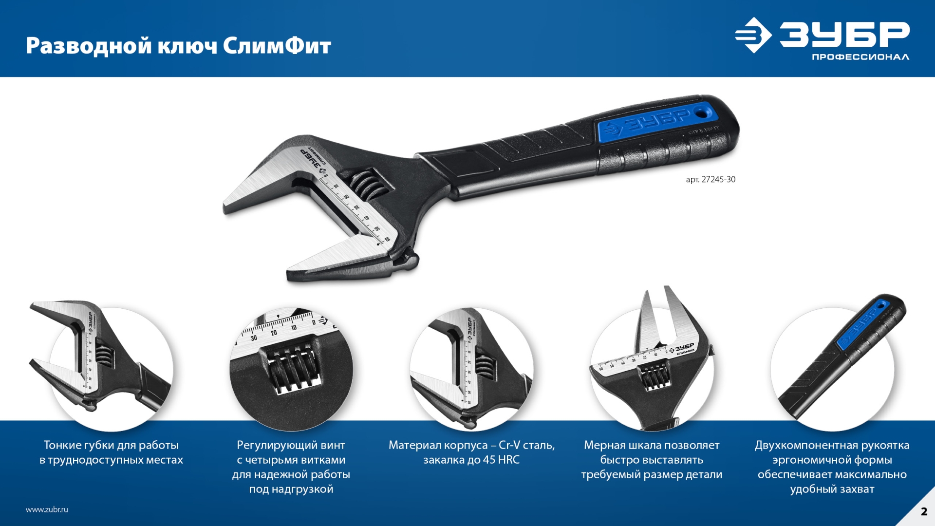 Ключи разводные ЗУБР ″СлимФит″ изготовлены из высокопрочной легированной стали CR-V, защищены от коррозии благодаря фосфатированному покрытию. Обладают повышенным ресурсом и обеспечивают длительную и качественную работу по монтажу и демонтажу резьбовых соединений.