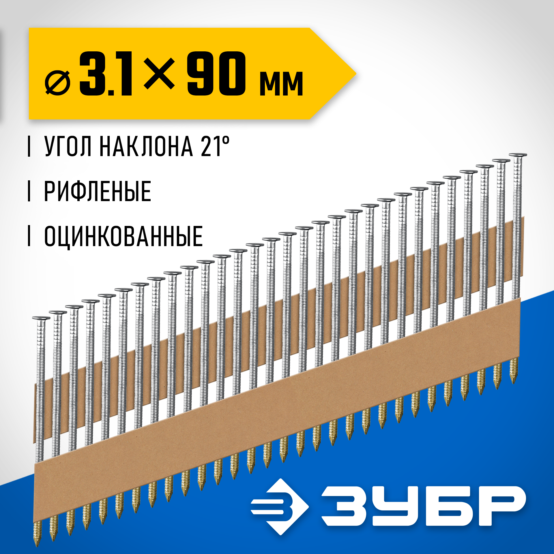 ЗУБР SN21 90 х 3.1 мм, реечные гвозди рифленые оцинкованные, 2010 шт(305396-90)
