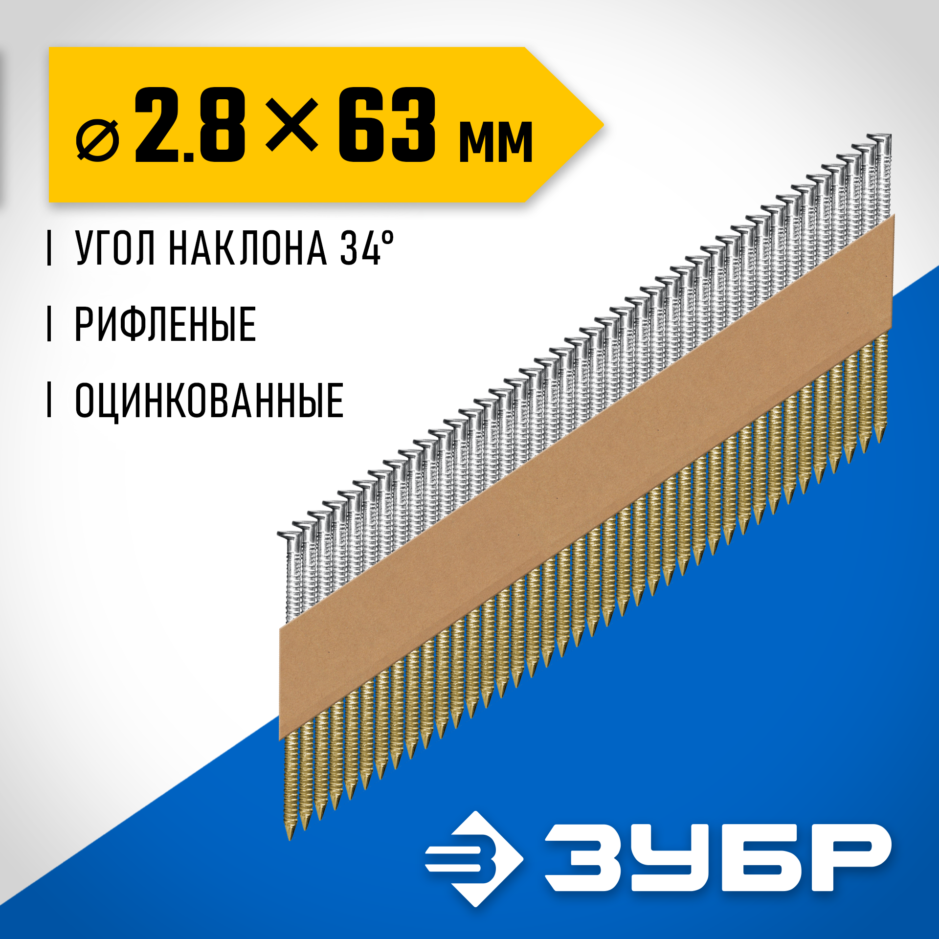 ЗУБР SN34 (D34) 63 х 2.8 мм, реечные гвозди рифленые оцинкованные, 4000 шт (305399-63)