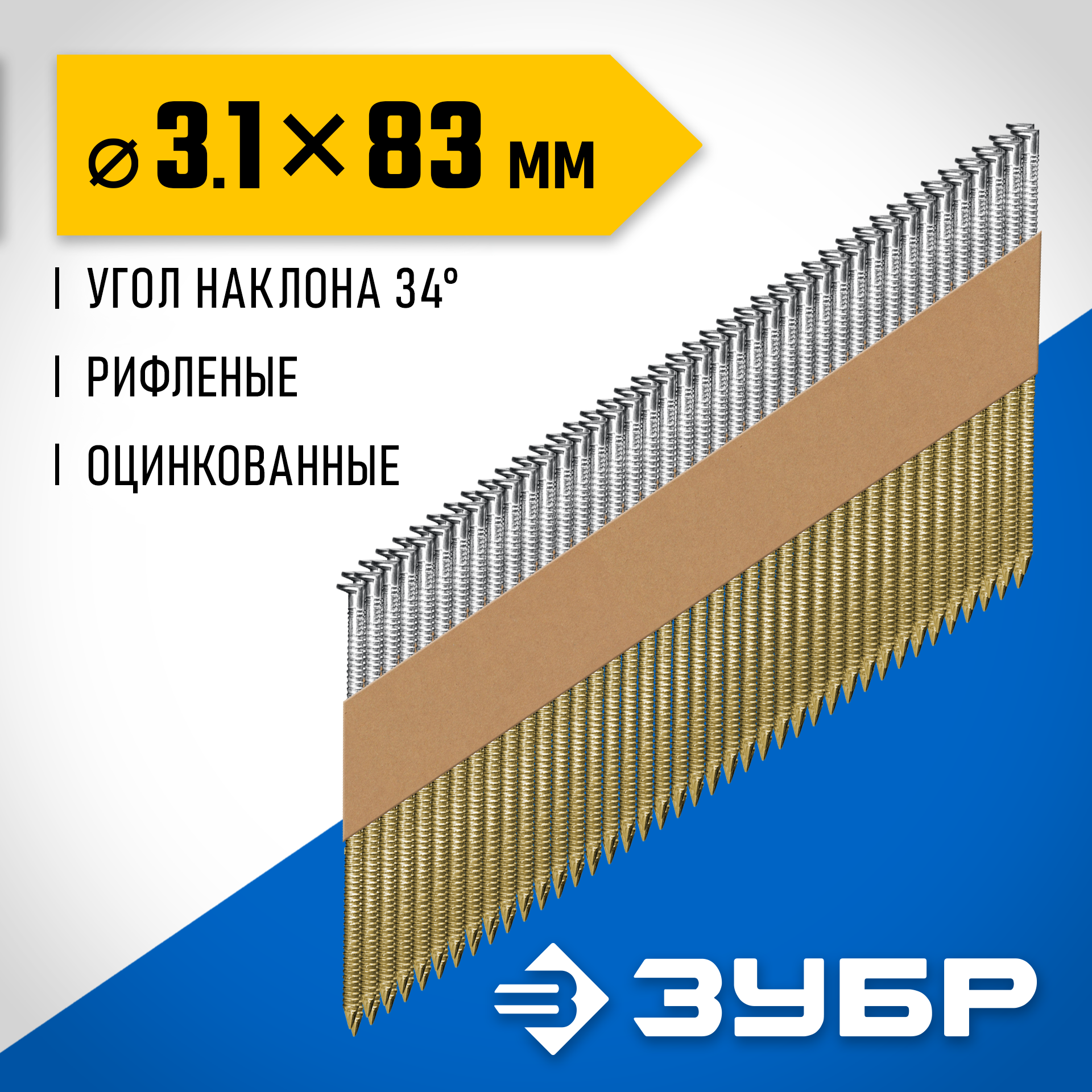ЗУБР SN34 (D34) 83 х 3.1 мм, реечные гвозди рифленые оцинкованные, 3000 шт (305399-83)