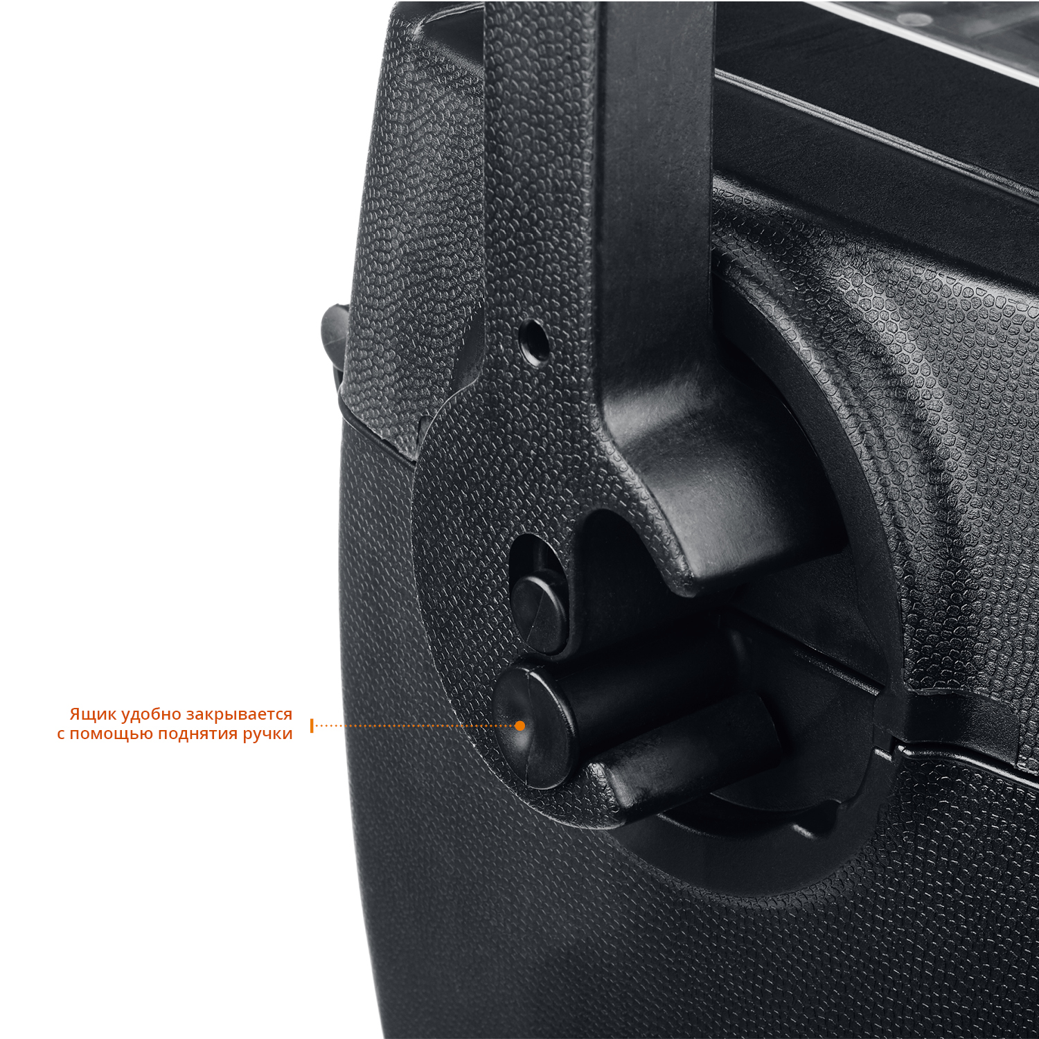 - Широкая металлическая ручка для регулировки центра тяжести ящика при переноске