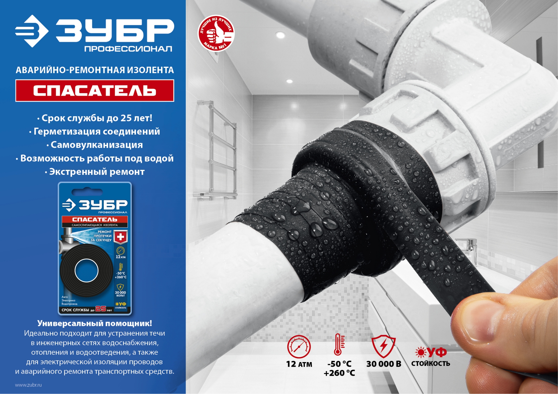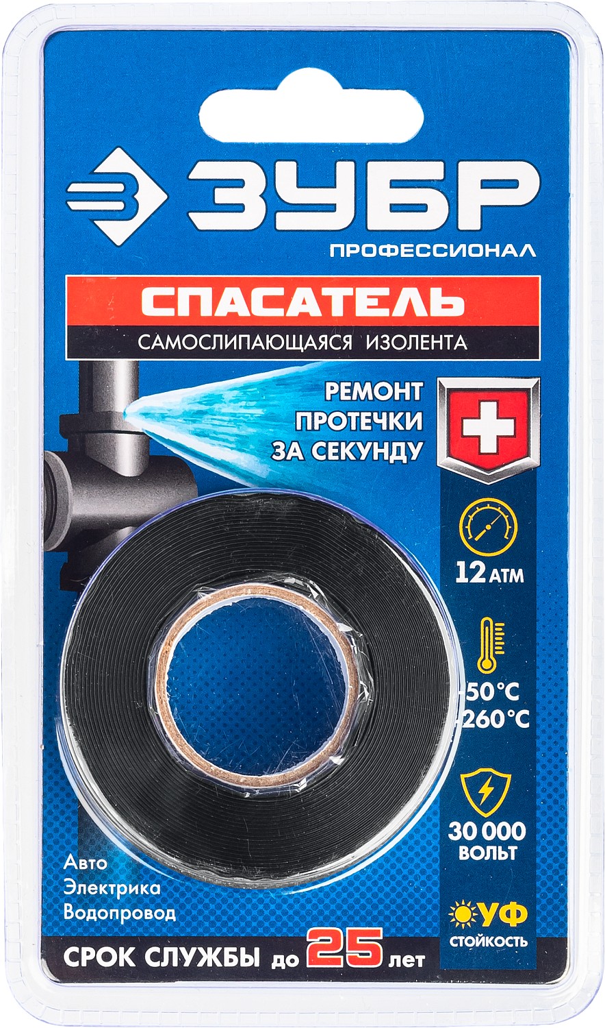 Позволяет устранить течи в инженерных сетях водоснабжения, отопления и водоотведения (даже под водой), электрическая изоляция проводов, аварйный ремонт транспортных средств (патрубков, шлангов), обертывание ручек спорт инвентаря
