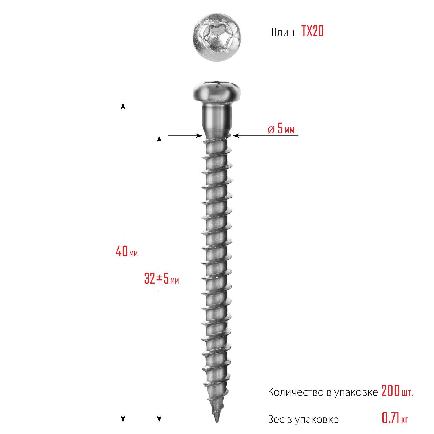 ЗУБР СПК, 40 х 5 мм, TX20, цинк 200 шт (0,68 кг.), саморез для перфорированного крепежа, Профессионал (30061-50-40)