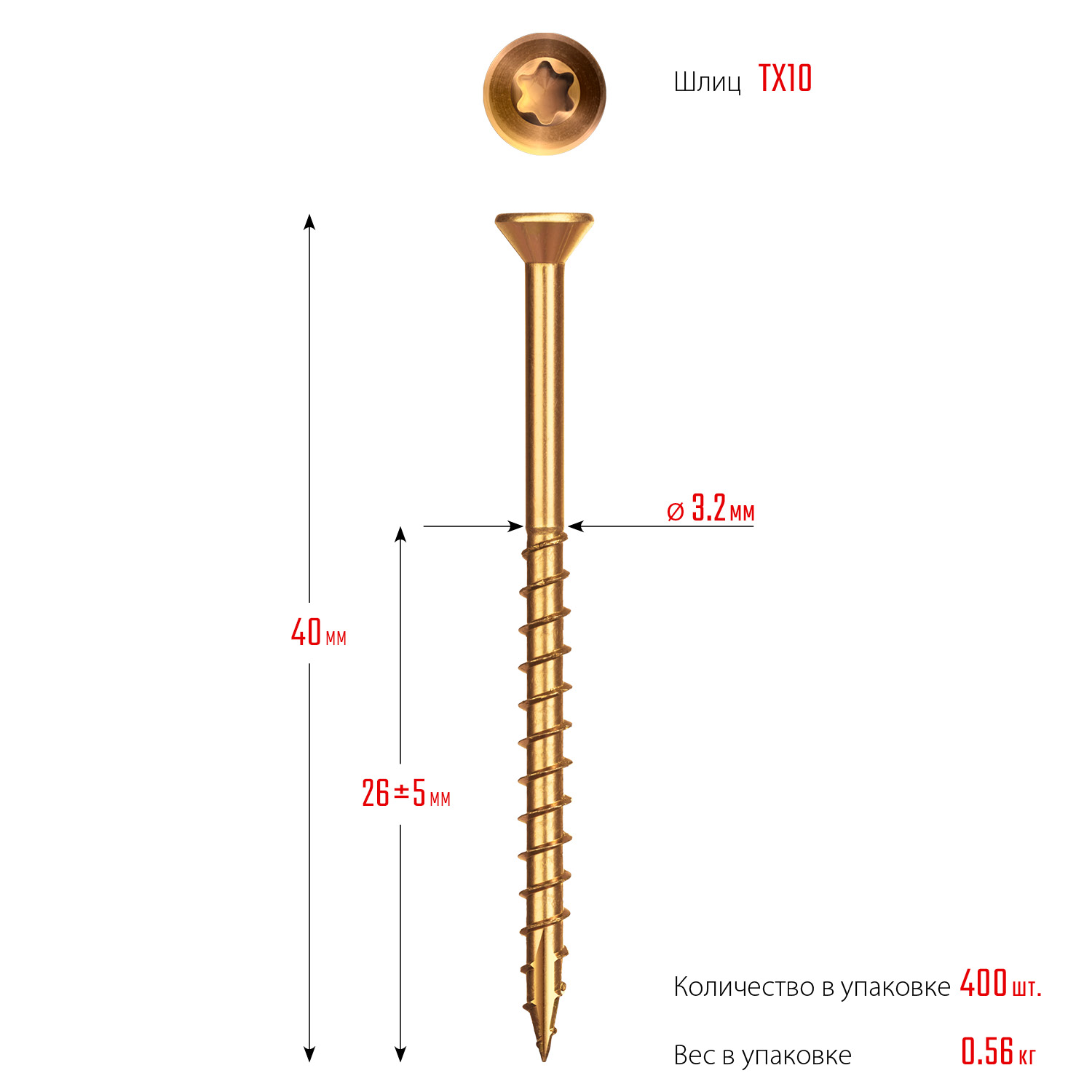 ЗУБР СПП, 40 х 3.2 мм, TX10, цинк 400 шт (0,53 кг.), саморез для половой доски и паркета, Профессионал (30071-32-40)