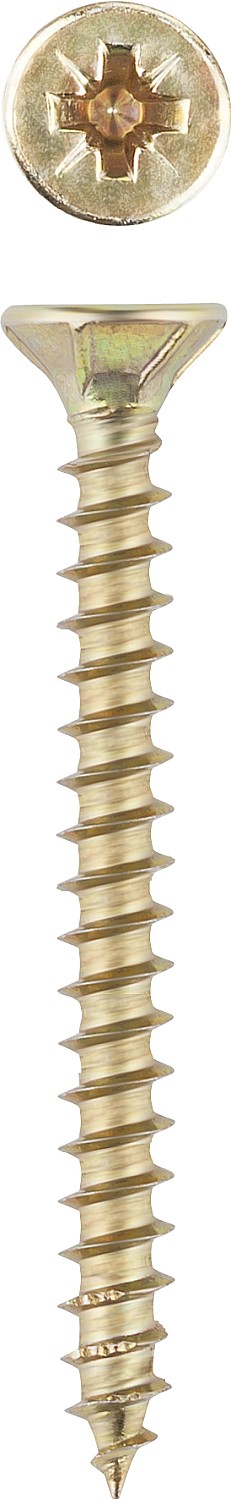 • Двойная потайная головка выдерживает большое усилие при закручивании и утапливается в древесине, что придает конструкции эстетический вид