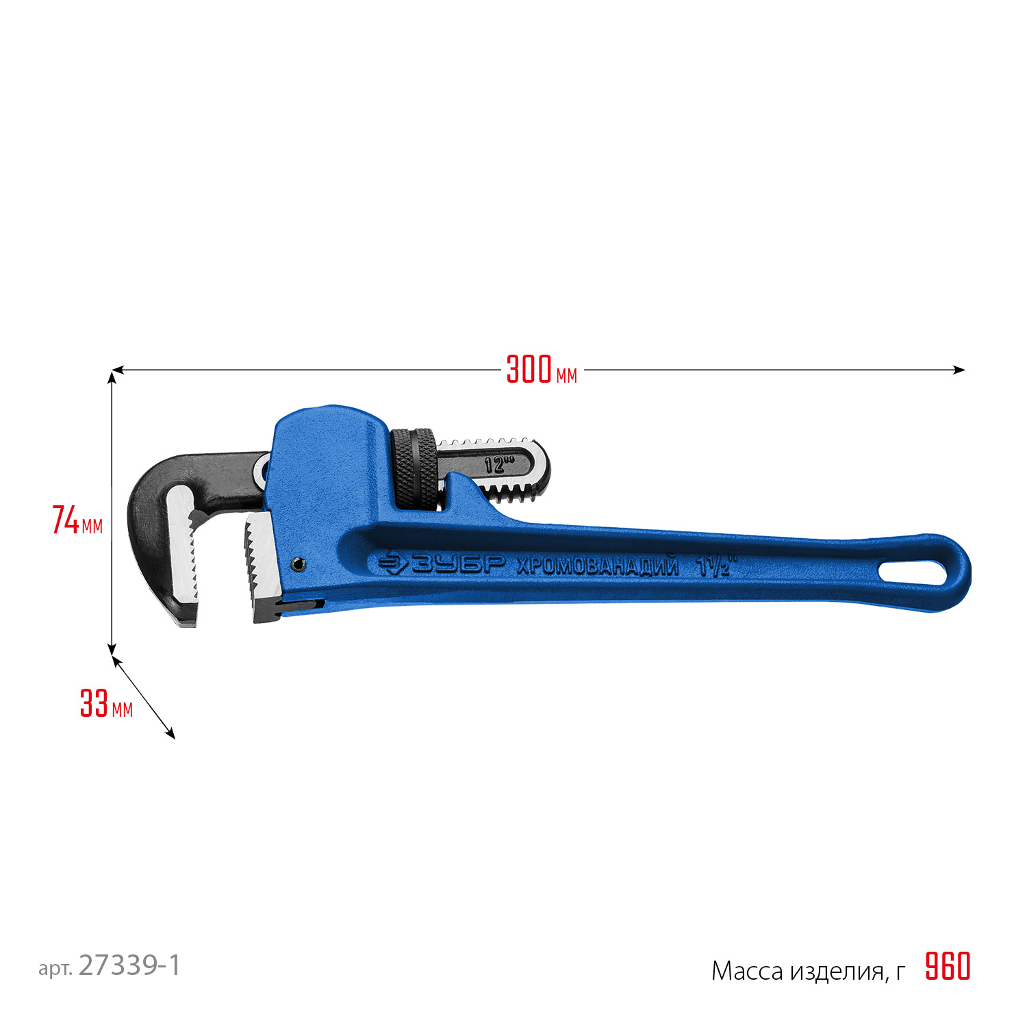 ЗУБР Стиллсон, 1.5″, 300 мм, трубный разводной ключ, Профессионал (27339-1)