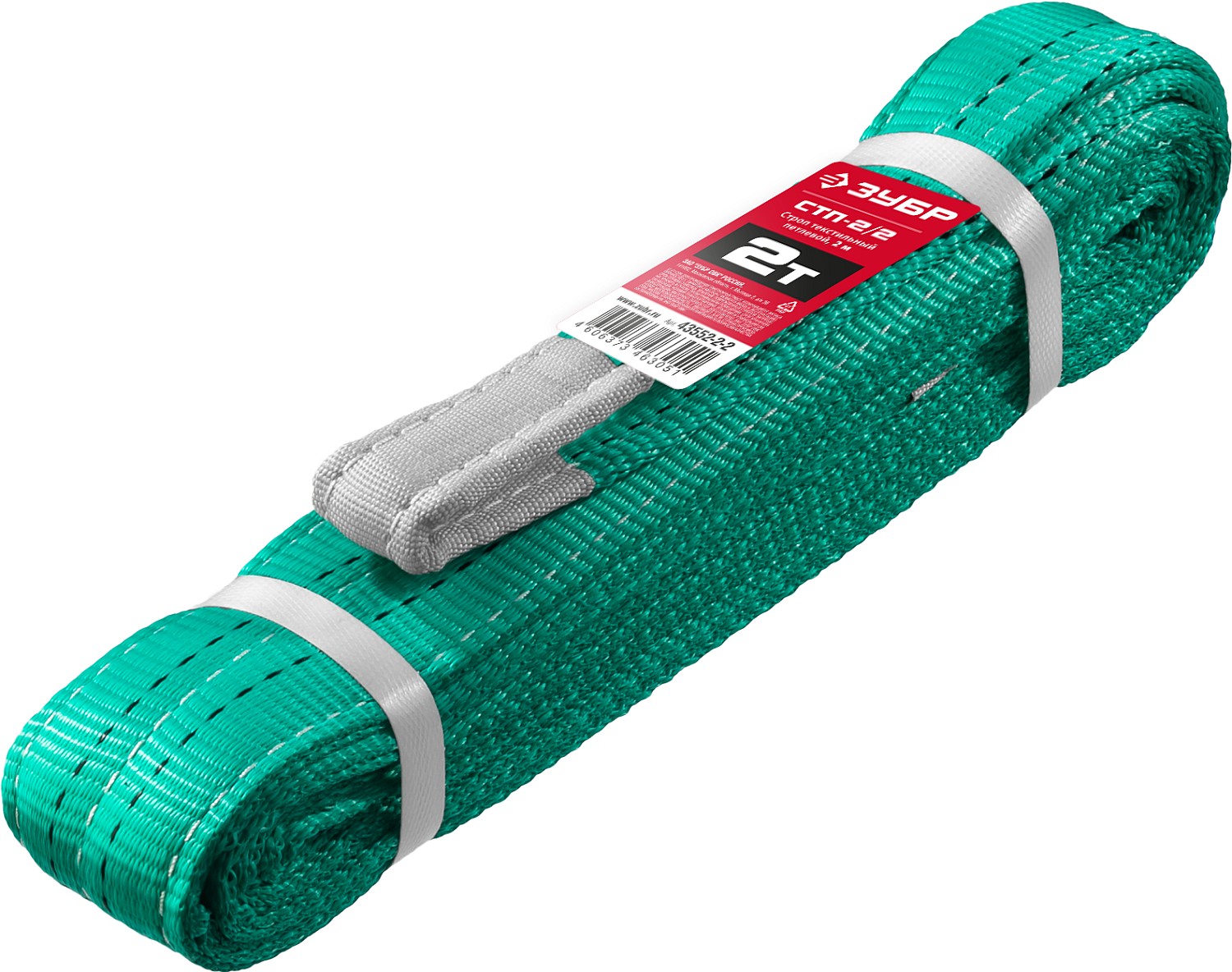 ЗУБР СТП-2/2, зеленый, г/п 2 т, длина 2 м, текстильный петлевой строп (43552-2-2)
