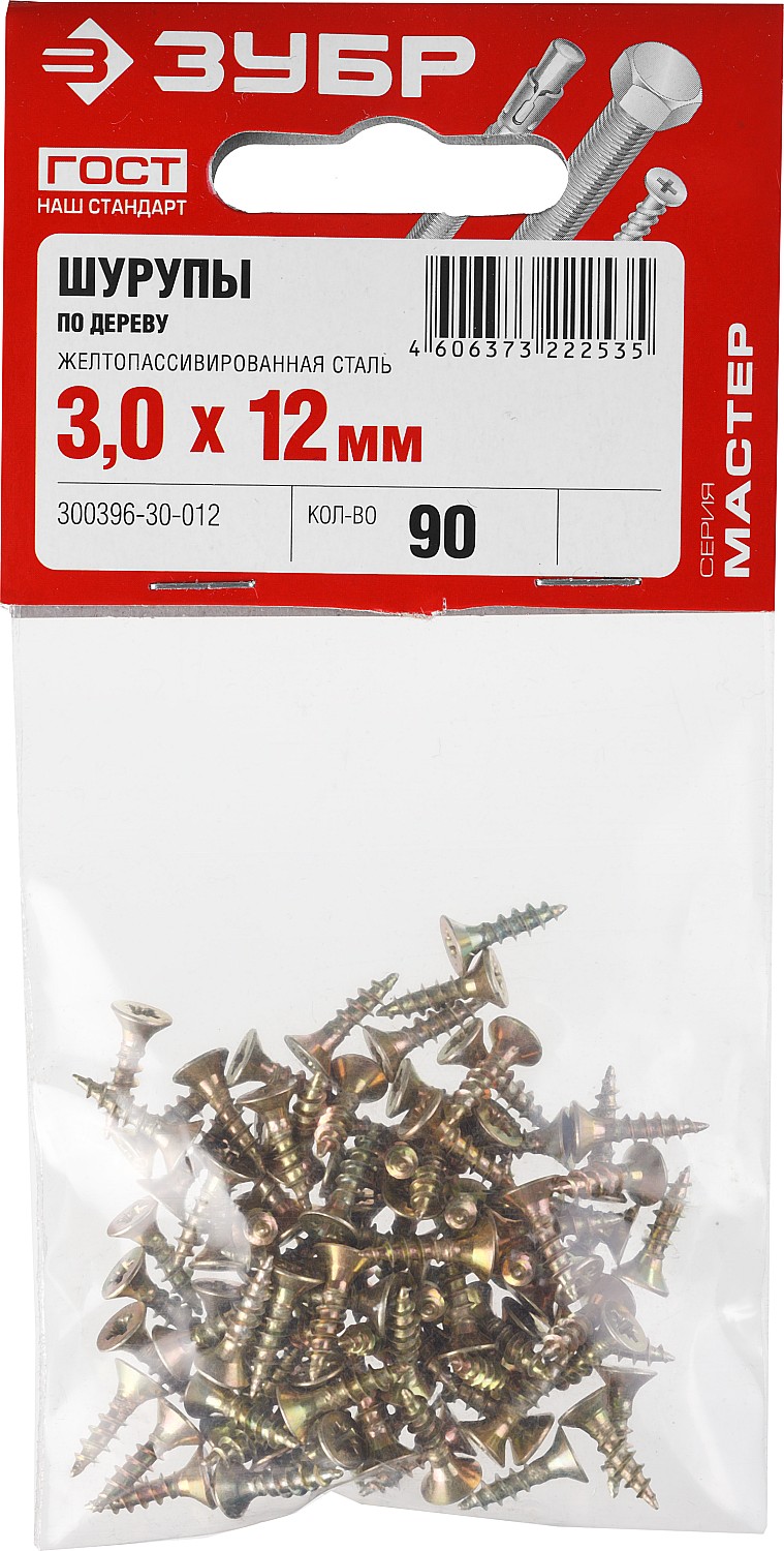 ЗУБР СУ-Ж, 12 х 3.0 мм, желтый цинк, 90 шт, универсальный саморез (300396-30-012)