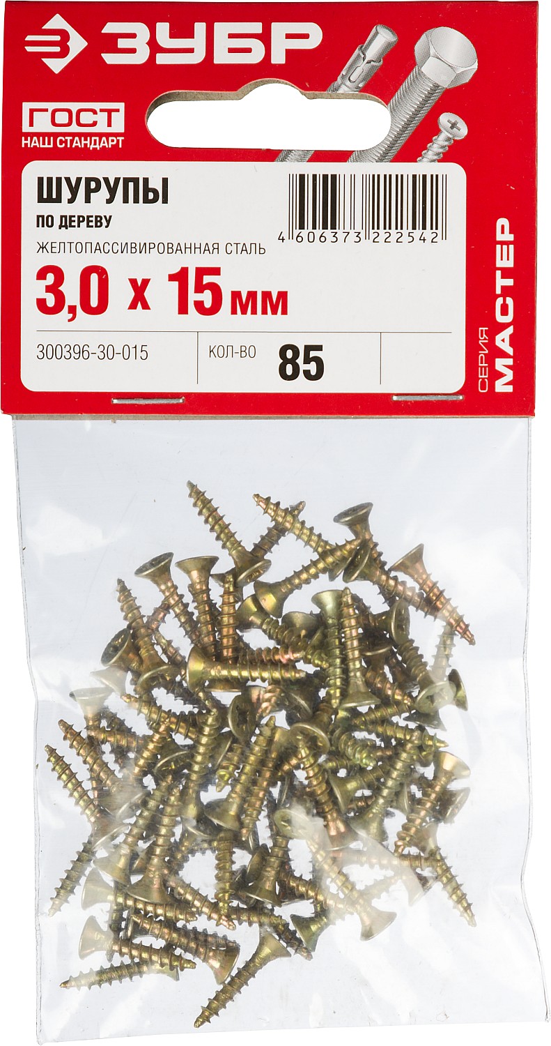 ЗУБР СУ-Ж, 15 х 3.0 мм, желтый цинк, 85 шт, универсальный саморез (300396-30-015)