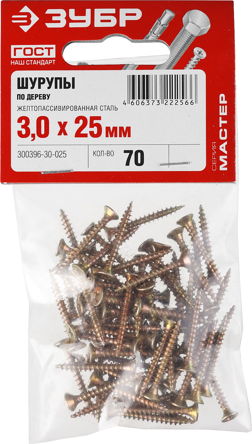 ЗУБР СУ-Ж, 25 х 3.0 мм, желтый цинк, 70 шт, универсальный саморез (300396-30-025)