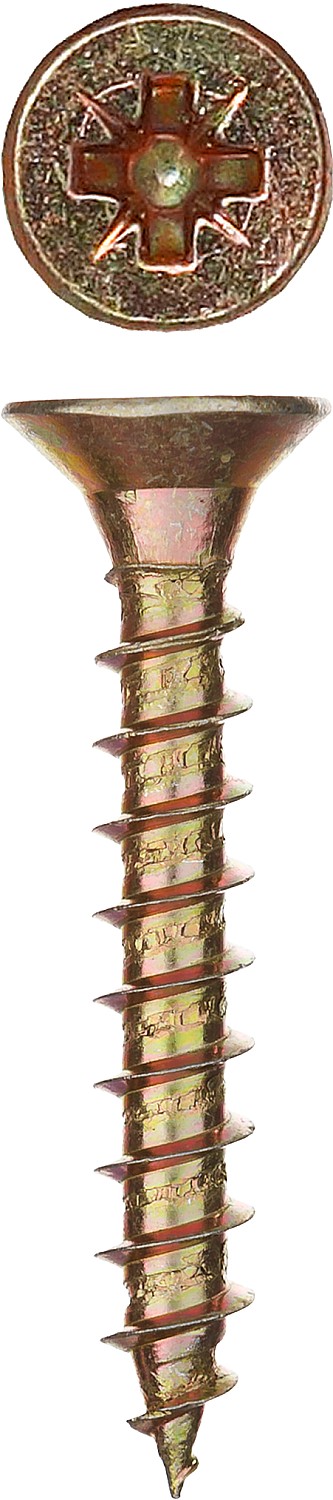 Саморезы универсальные изготовлены из стального прутка с высоким содержанием углерода. Контроль за геометрией самореза начинается с калибровки прутка и заканчивается тщательной проверкой размеров готового изделия. Нормативная твердость стали достигается термической обработкой. Поверхностная твердость 550-800HV, твердость в сердцевине мин. 320HV. Саморезы легко вкручиваются обычным шуруповертом или отверткой. Предварительное сверление в скрепляемых материалах не требуется.