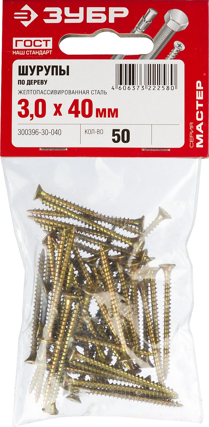 ЗУБР СУ-Ж, 40 х 3.0 мм, желтый цинк, 50 шт, универсальный саморез (300396-30-040)