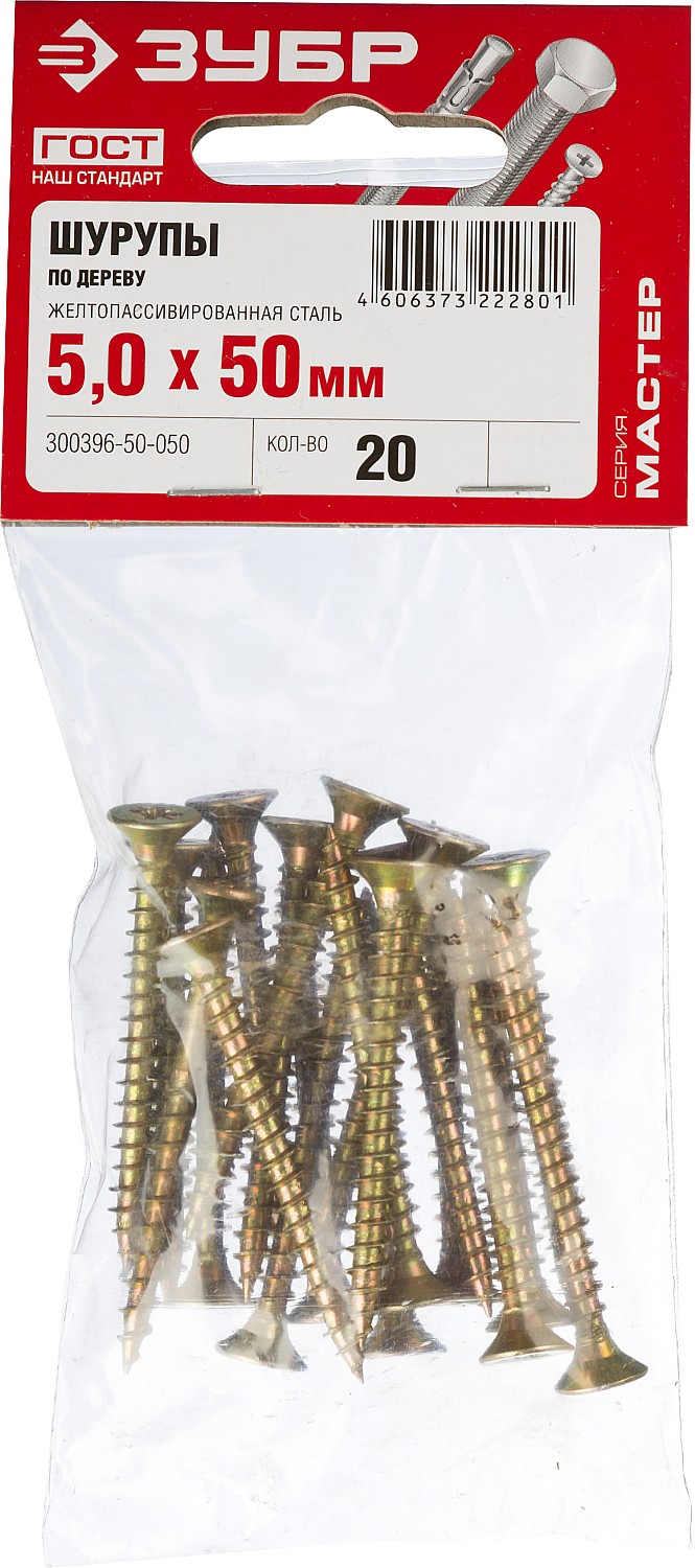 ЗУБР СУ-Ж, 50 х 5.0 мм, желтый цинк, 20 шт, универсальный саморез (300396-50-050)