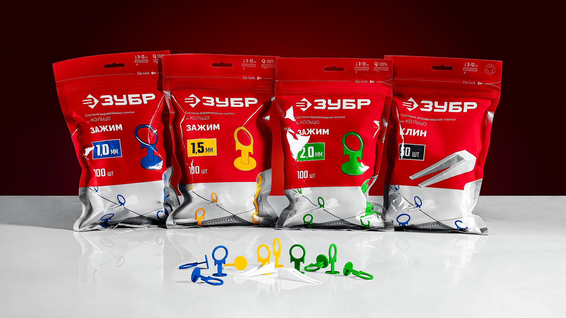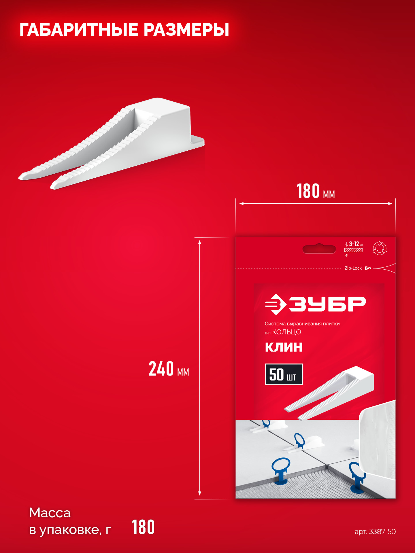 Предназначен для многократного использования, сделан из прочного пластика, он не деформируется при зажимании и надежно удерживает плитку в единой плоскости, обеспечивая отсутствие проседания во время высыхания плиточного клея. «Шаг зубьев» и форма клина позволяет работать с плиткой толщиной от 3 до 12 мм.