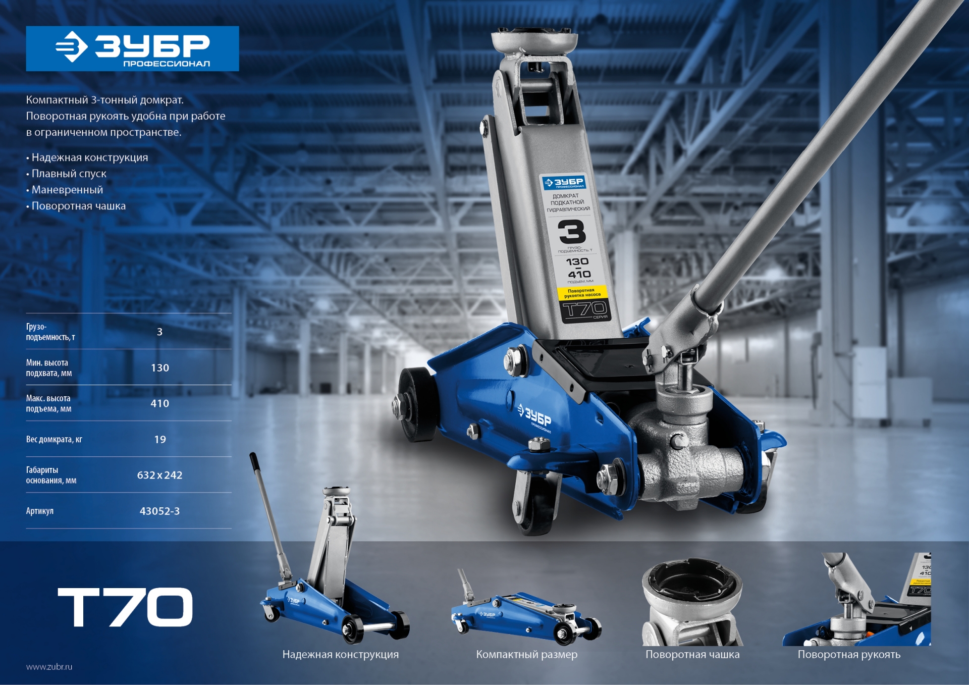 - Повортная ручка домкрата для работы в ограниченном пространстве.
