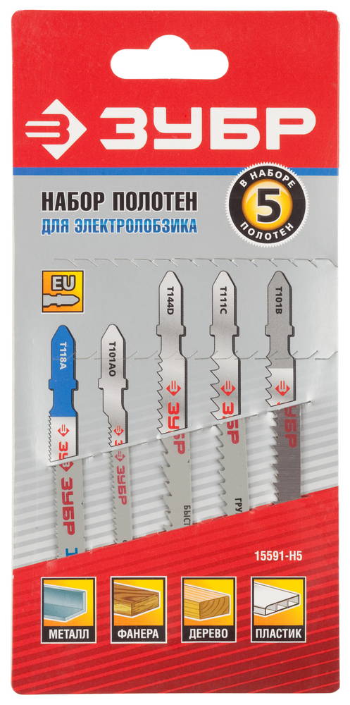 Полотна ЗУБР ″ЭКСПЕРТ″ для электролобзиков имеют увеличенную толщину рабочей части, что даёт повышенную устойчивость к излому и перегибу. Набор полотен применяются на электрических лобзиках при резке массива древесины, многослойной фанеры, ДСП и листового металла.