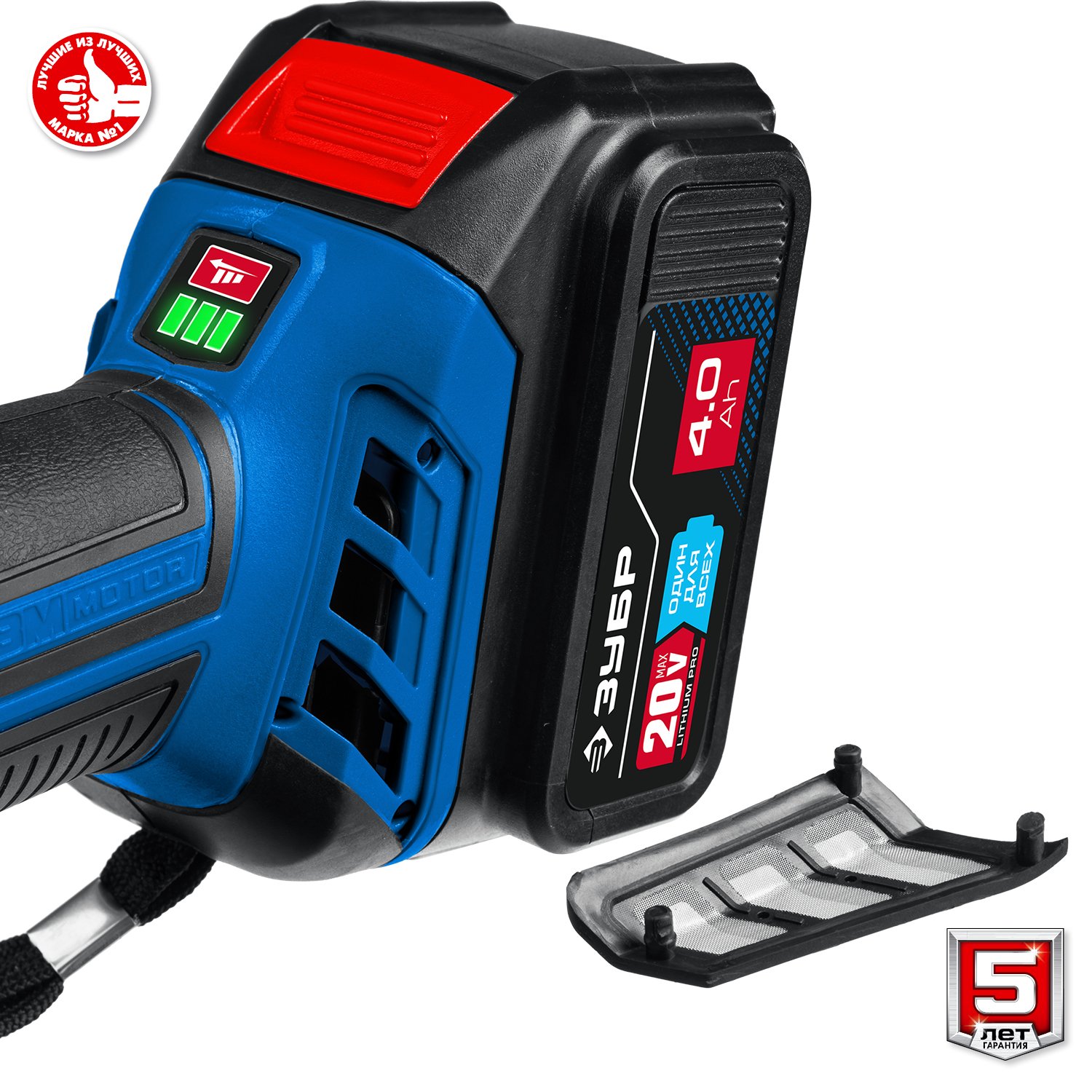 - отсутствие потери мощности в процессе работы - Две батареи емкостью 4 Ач емкости в комплекте для безостановочной работы
