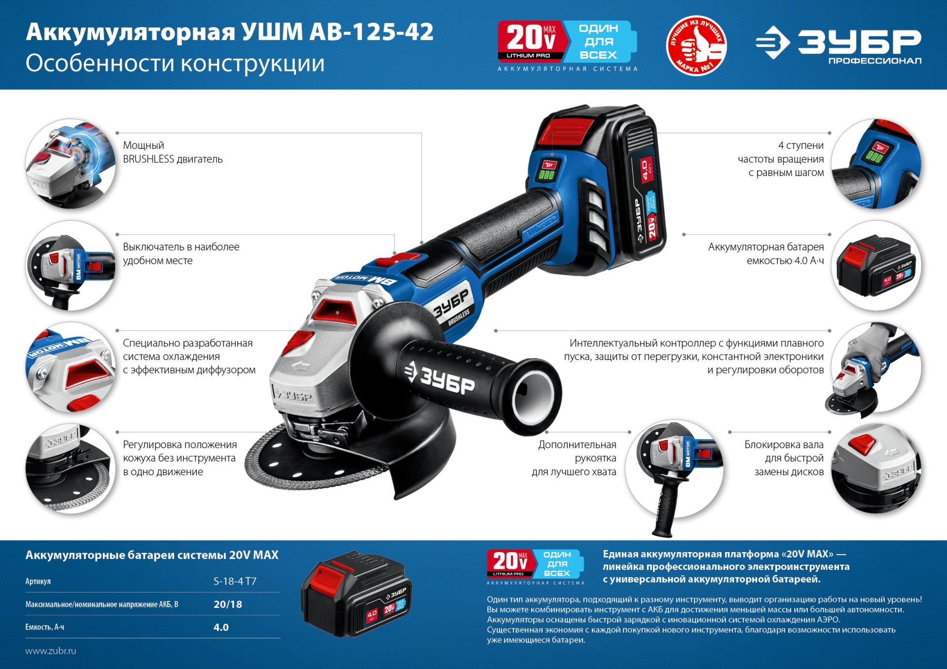 Высокотехнологичная замена сетевой УШМ мощностью до 1200 Вт. Две мощные батареи емкостью 4 Ач и быстрая зарядка током 6А исключают простои. При меньшем, чем у сетевого аналога, весе данная модель обладает максимальной мобильностью, гораздо более удобной эргономикой, имеет все вспомогательные и защитные системы. Что в совокупности с бесщеточным двигателем с длительным ресурсом делает данную модель гораздо более выгодным выбором к приобретению