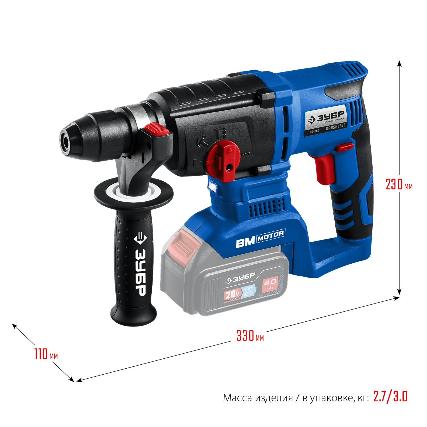 - Комфортная дополнительная рукоятка позволяет надежно удерживать инструмент при работе