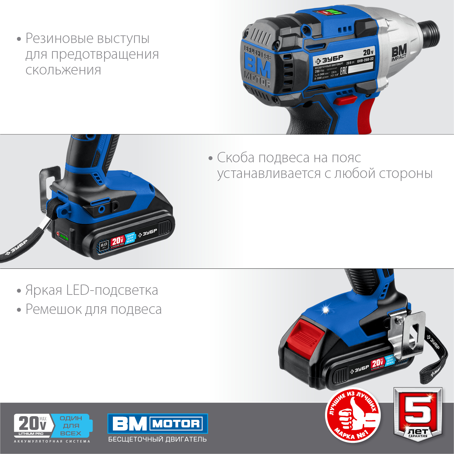 С даты производства 05.2023 патрон позволяет устанавливать биту без оттягивания втулки - Подсветка рабочего места способствует дополнительному удобству при работе в условиях недостаточного освещения
