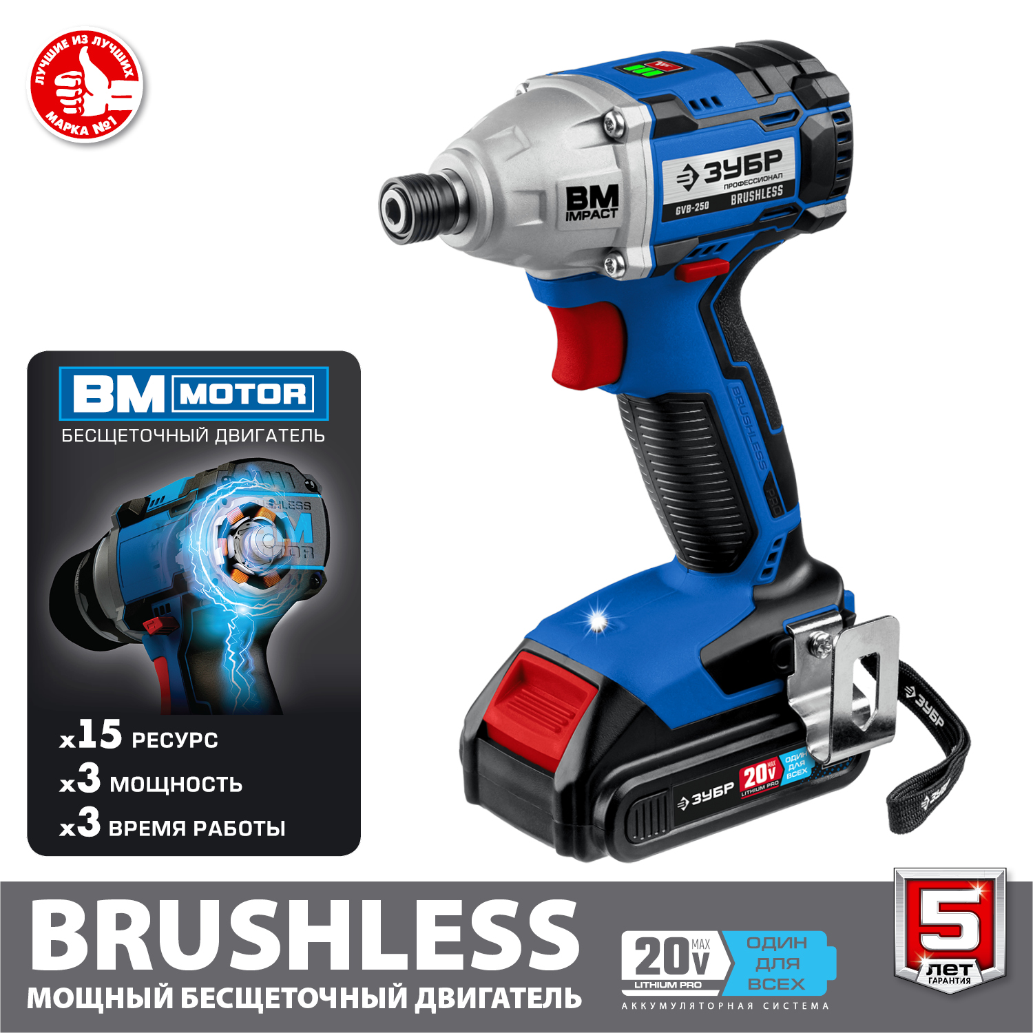 Профессиональный винтоверт оснащен BRUSHLESS двигателем, который обеспечивает высокие удельные характеристики и производительность благодаря двум батареям в комплекте. Точное управление параметрами двигателя позволяет ему постоянно работать в наиболее оптимальном режиме, регулировать крутящий момент, реализовывать дополнительные рабочие функции
