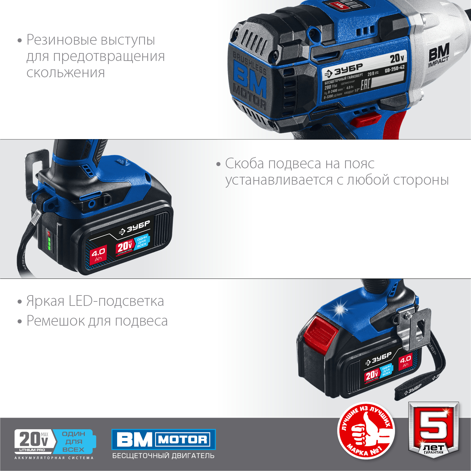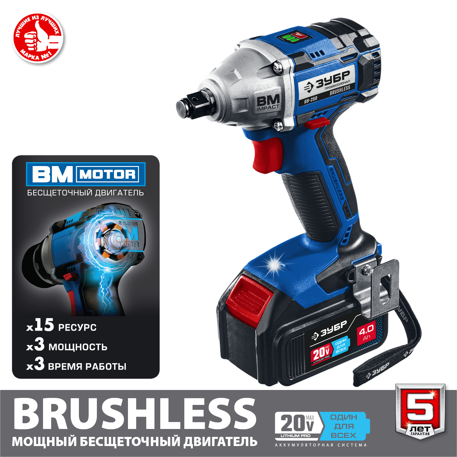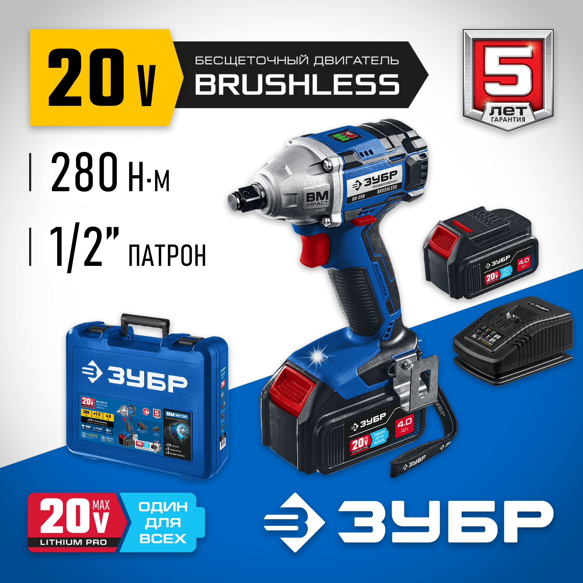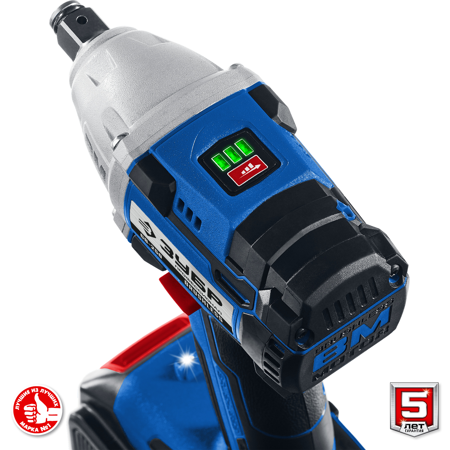 Профессиональное изделие с передовым BRUSHLESS двигателем обеспечивает крутящий момент до 280 Нм и высокую производительность благодаря двум емким батареям. Полностью программно-управляемый двигатель способен работать с различными уровнями крутящего момента (для сборки конструкций, закручивания колес, затягивания крупного крепежа), реализовывать дополнительные режимы работы и оптимально потреблять заряд при любой нагрузке