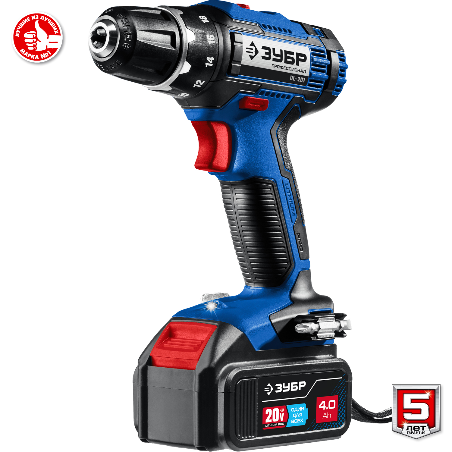 - Скоба крепления на поясе и битодержатель устанавливаются с любой стороны инструмента
