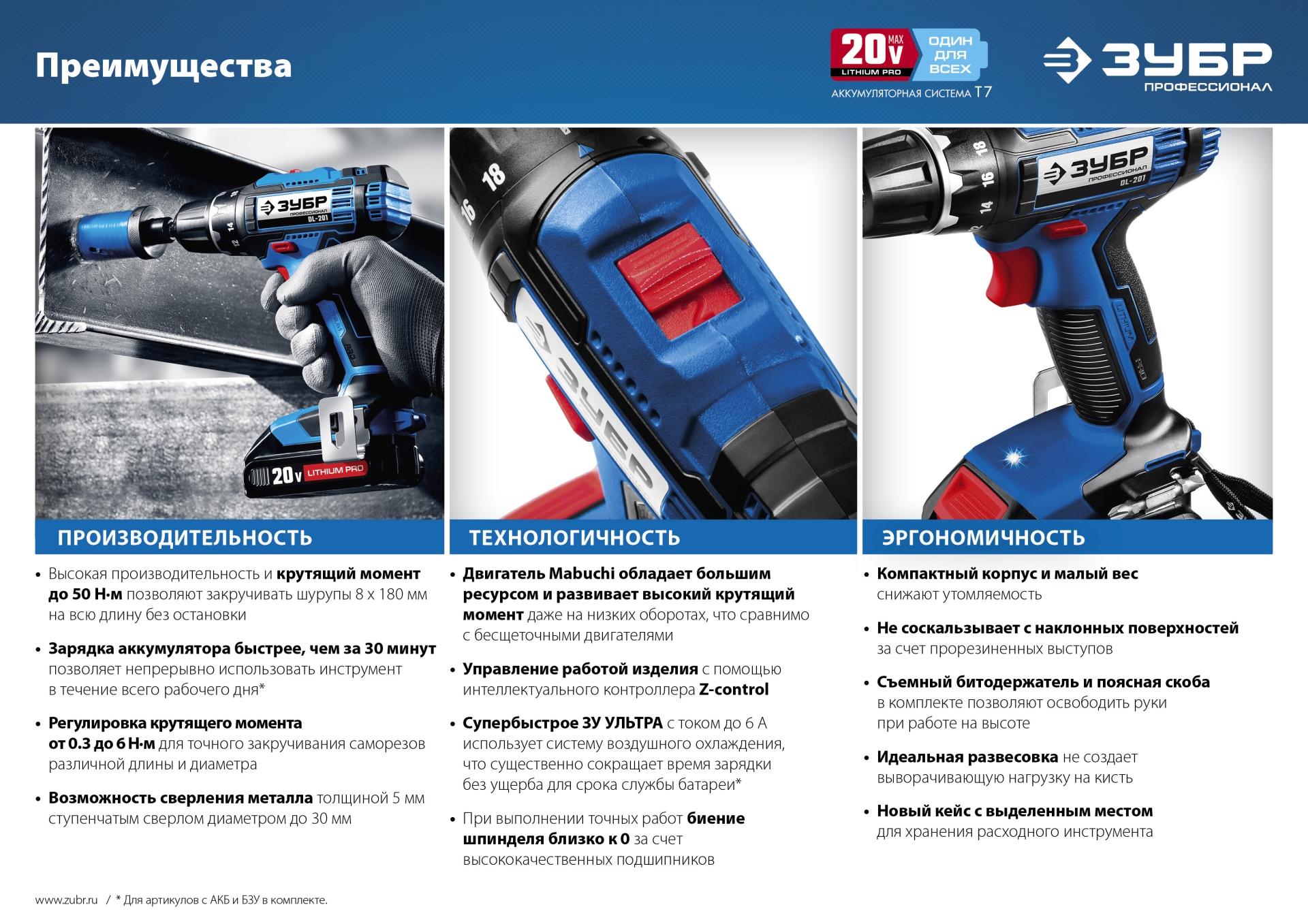 - благодаря току до 6А заряжает батарею за 30 минут* - Подсветка рабочего места не перекрывается патроном