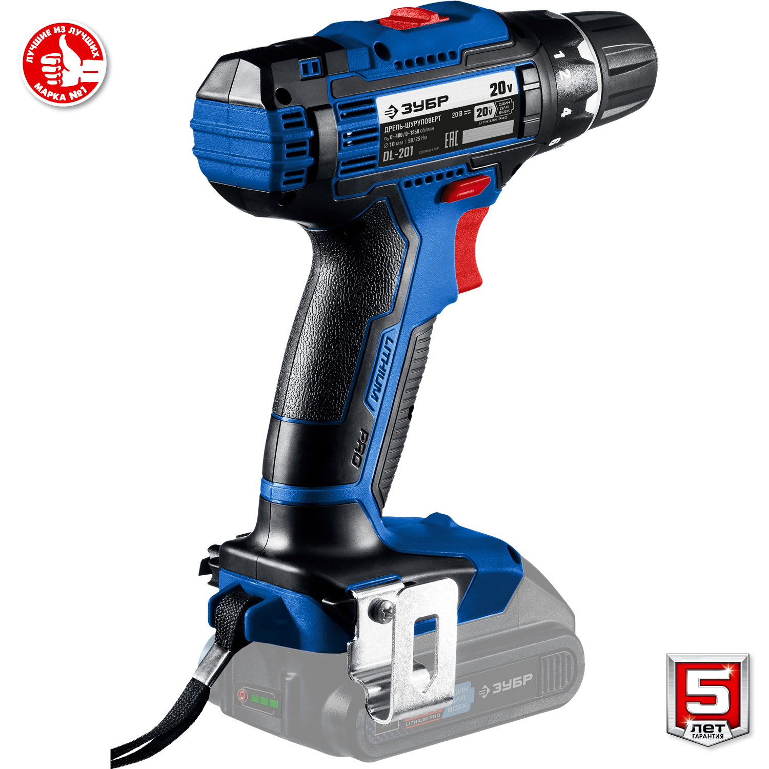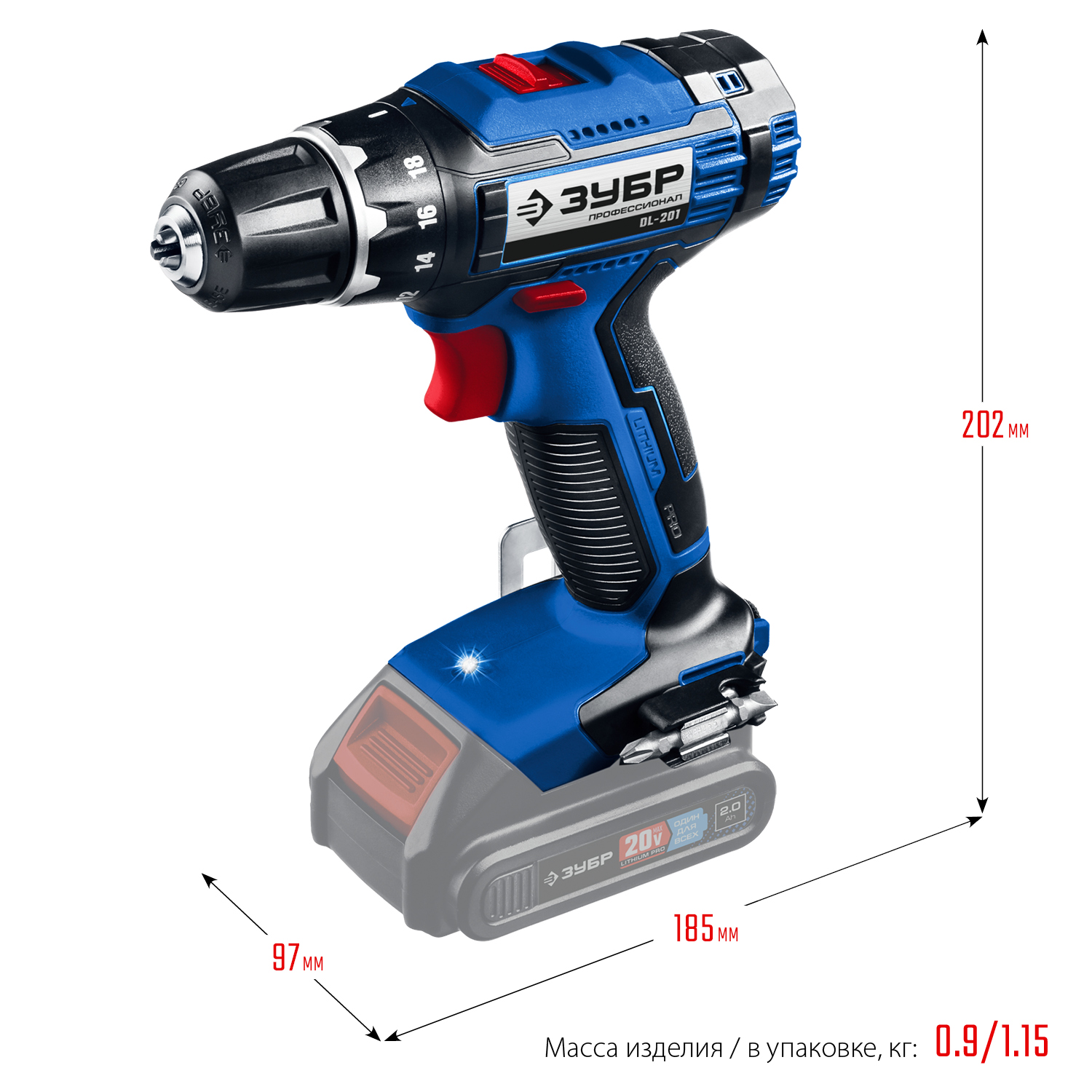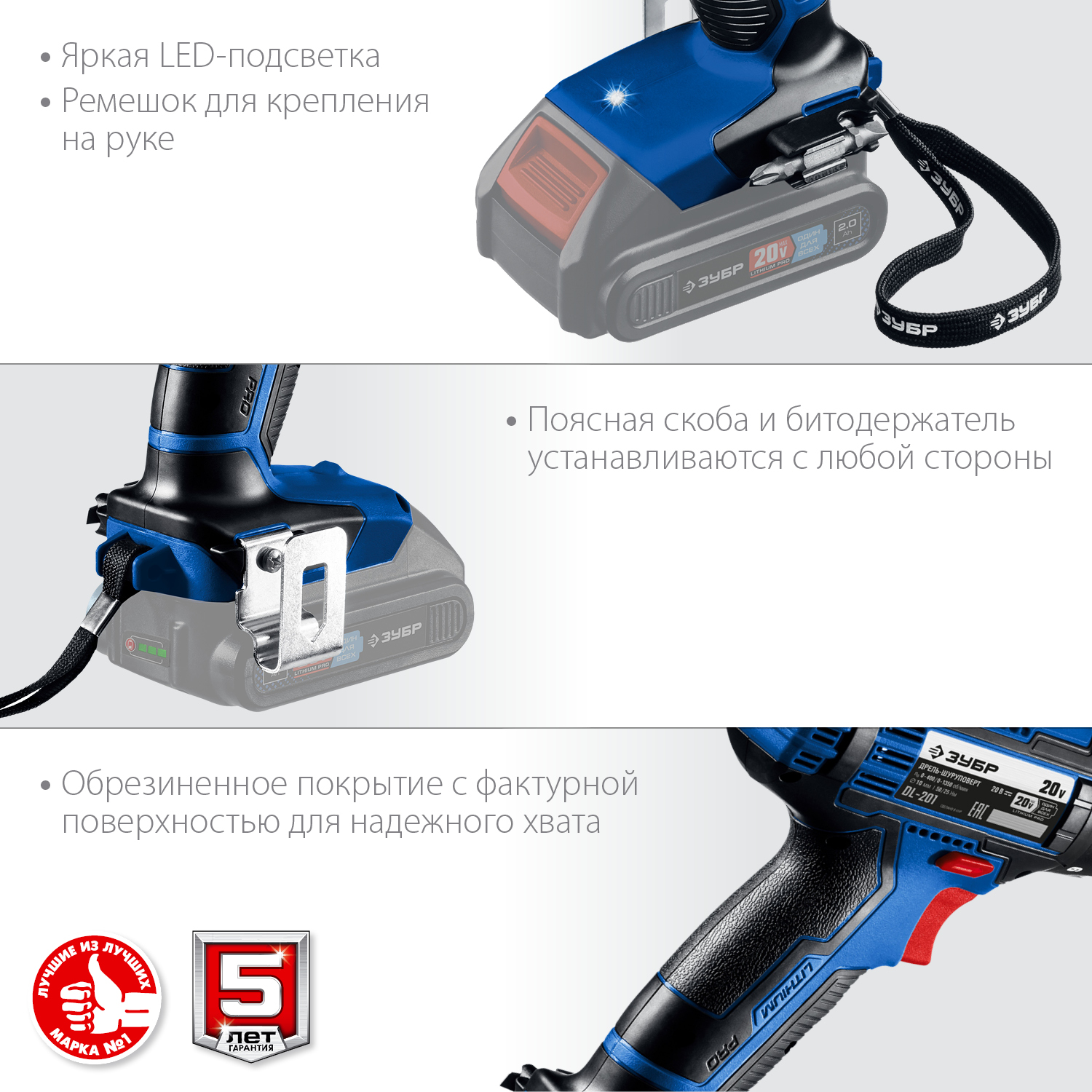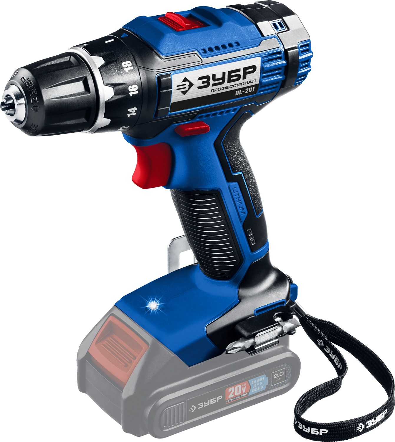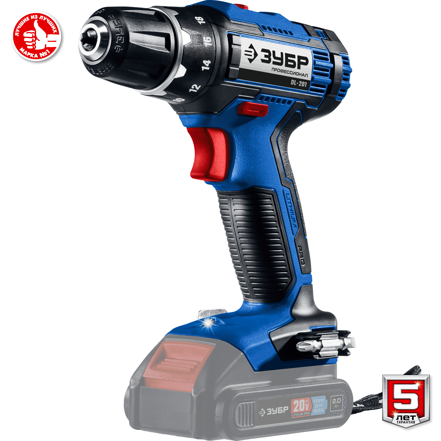 - Скоба крепления на поясе и битодержатель, устанавливаемые с любой стороны инструмента