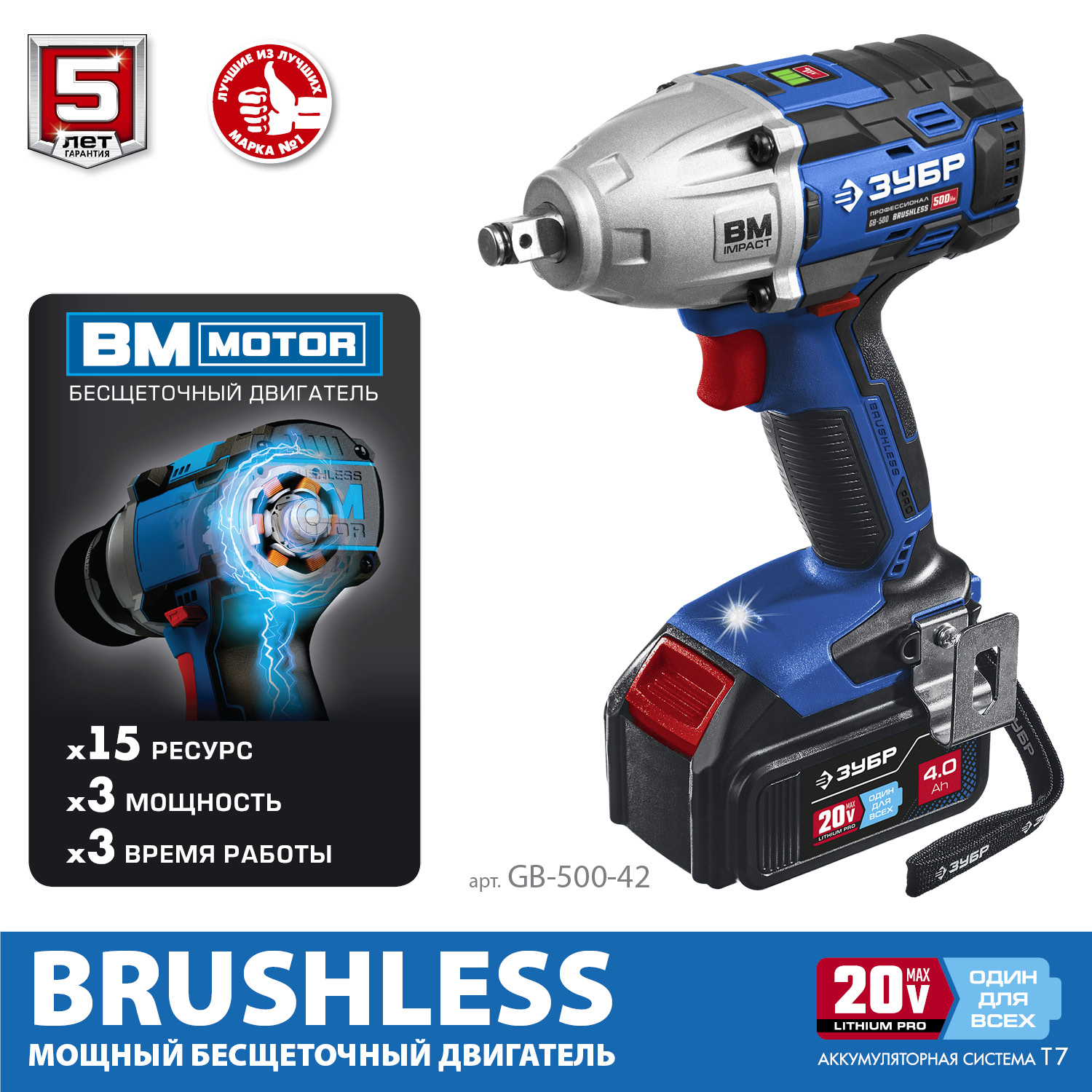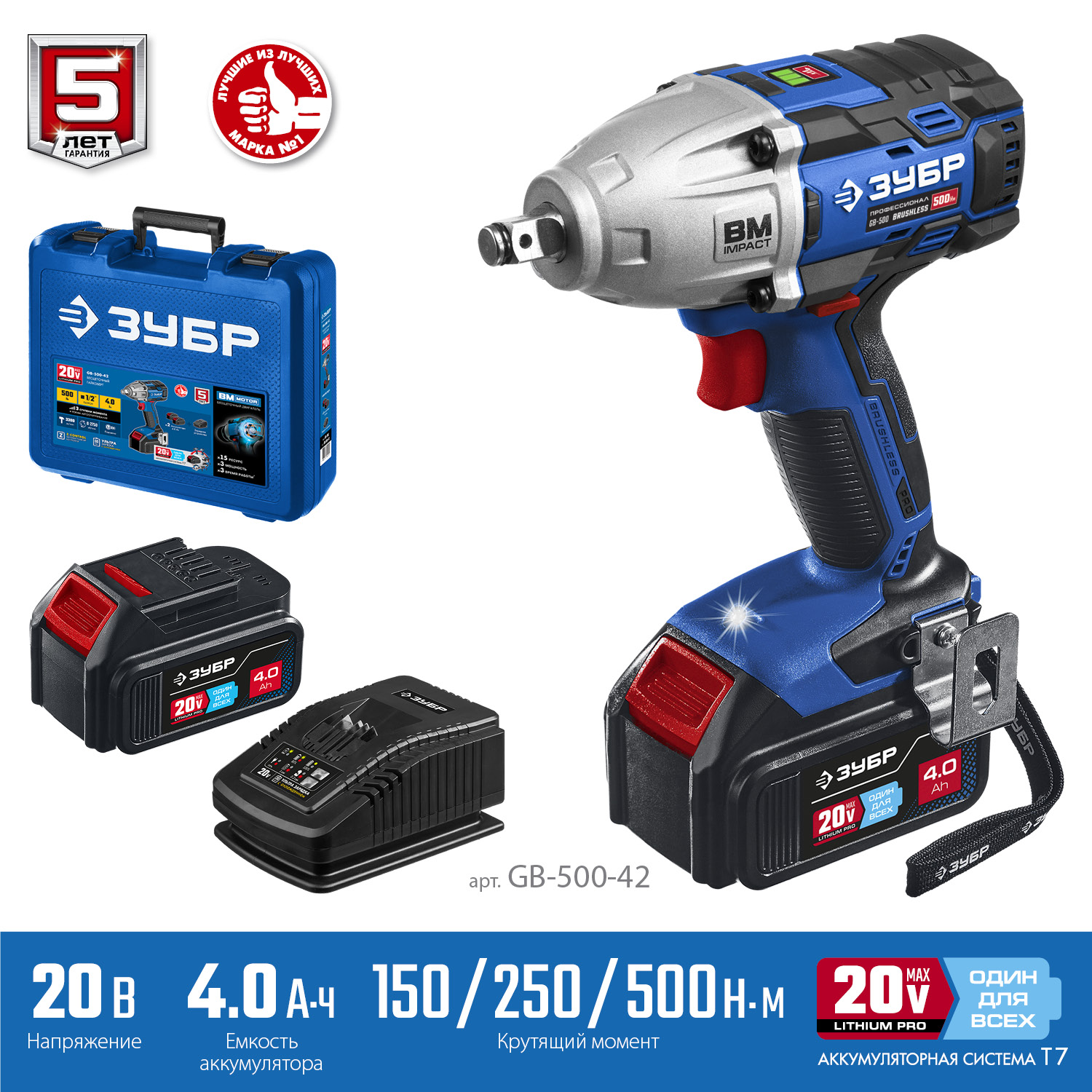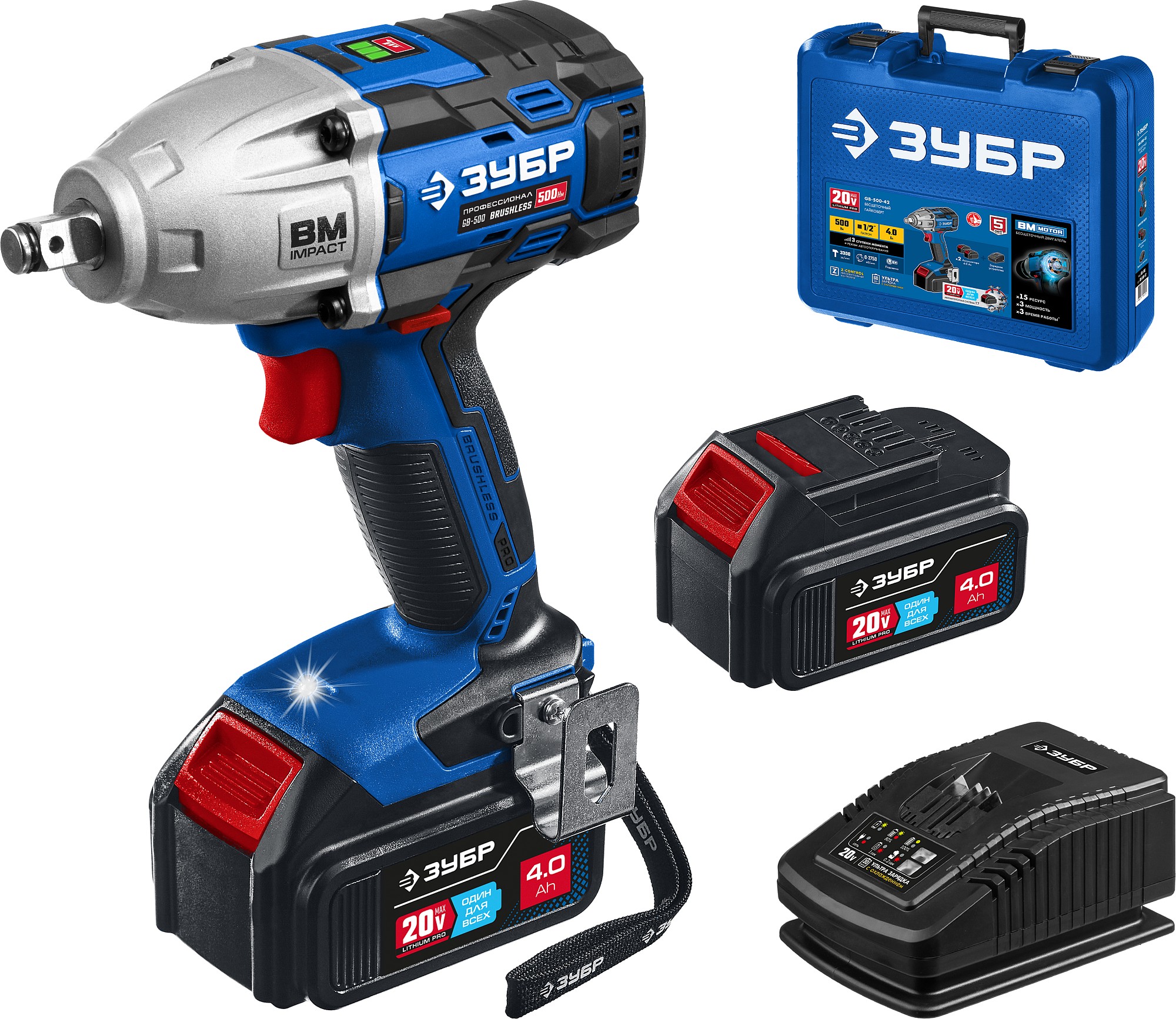 Гайковерт профессионального уровня с BRUSHLESS двигателем высокой эффективности и надежности. Крутящий момент 500 Нм позволяет закручивать крепеж размером до М22. Дополнительный автоматический режим ″срыва″ крепежа упрощает серийную работу. Две емкие батареи и ультрабыстрая зарядка помогают работать практически без перерывов
