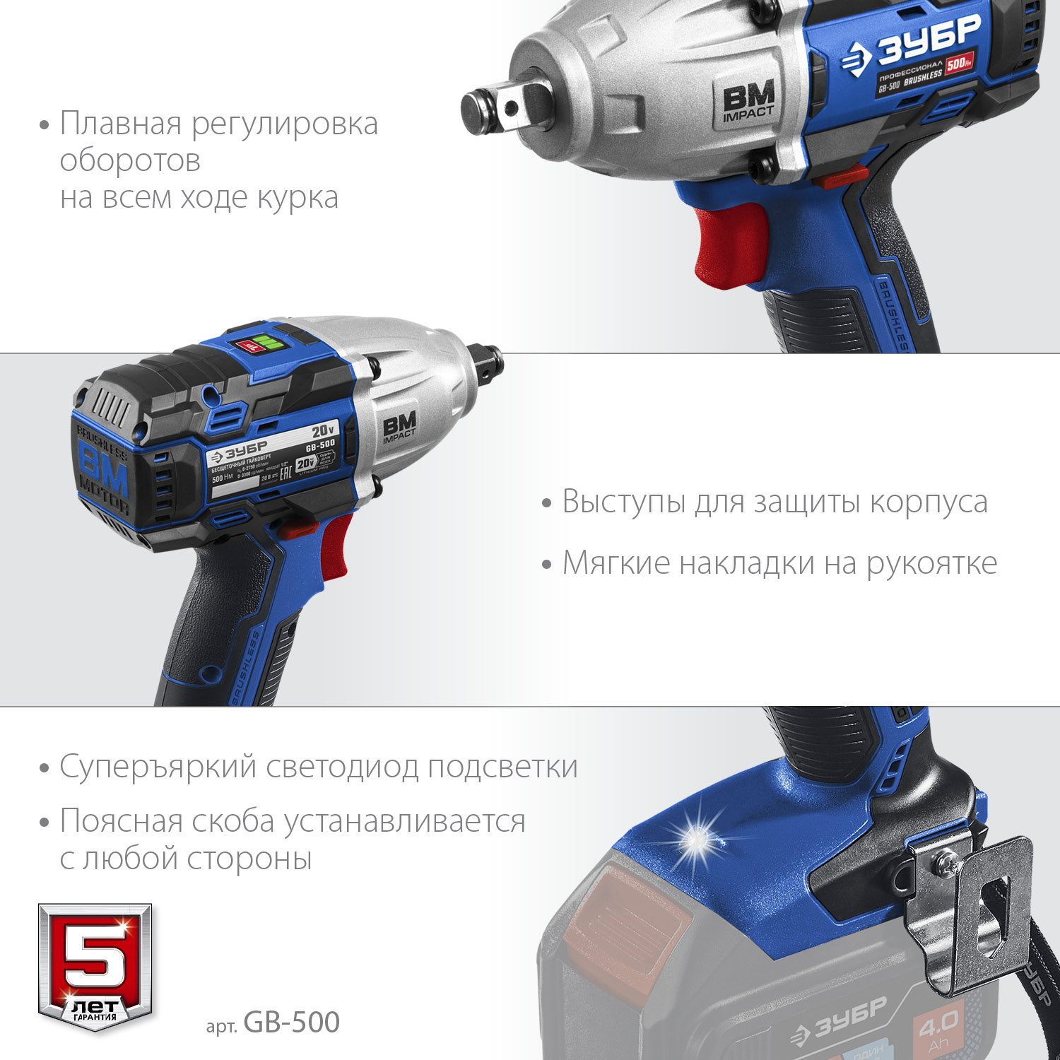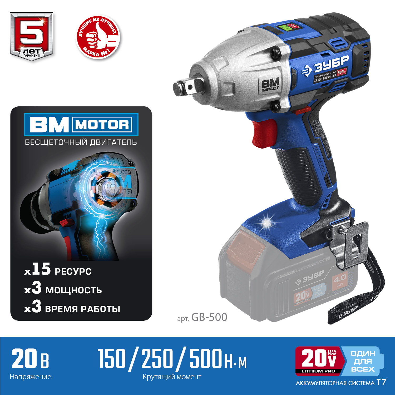 Гайковерт профессионального уровня с BRUSHLESS двигателем высокой эффективности и надежности. Крутящий момент 500 Нм позволяет закручивать крепеж размером до М22. Дополнительный автоматический режим ″срыва″ крепежа упрощает серийную работу