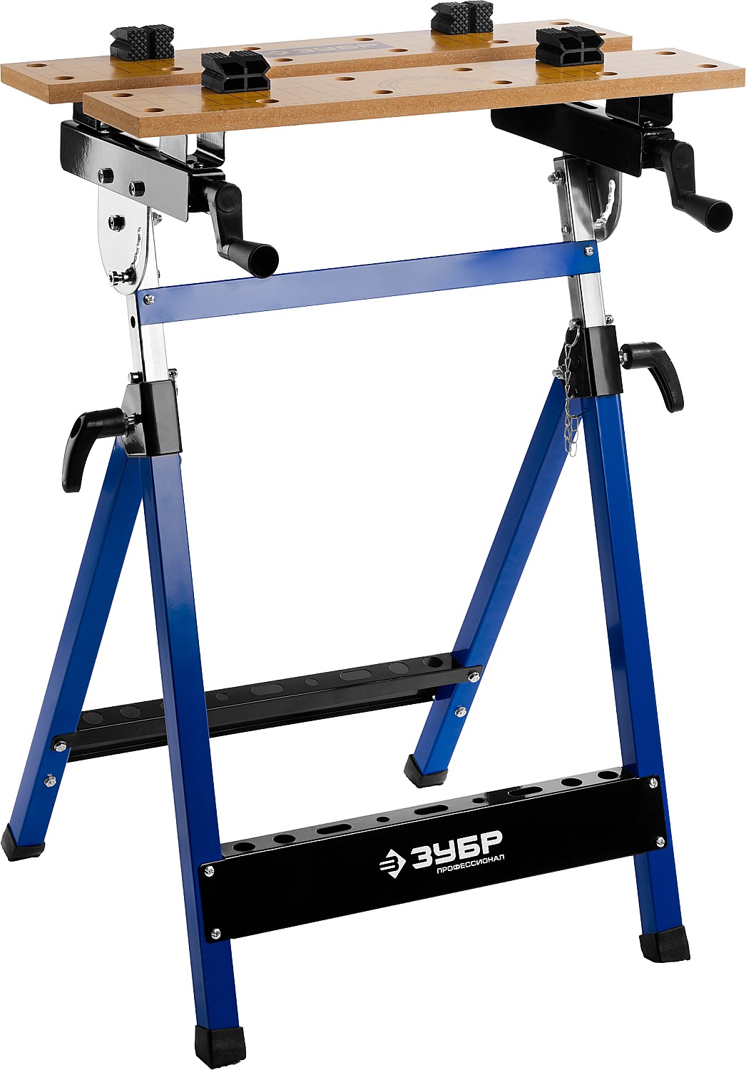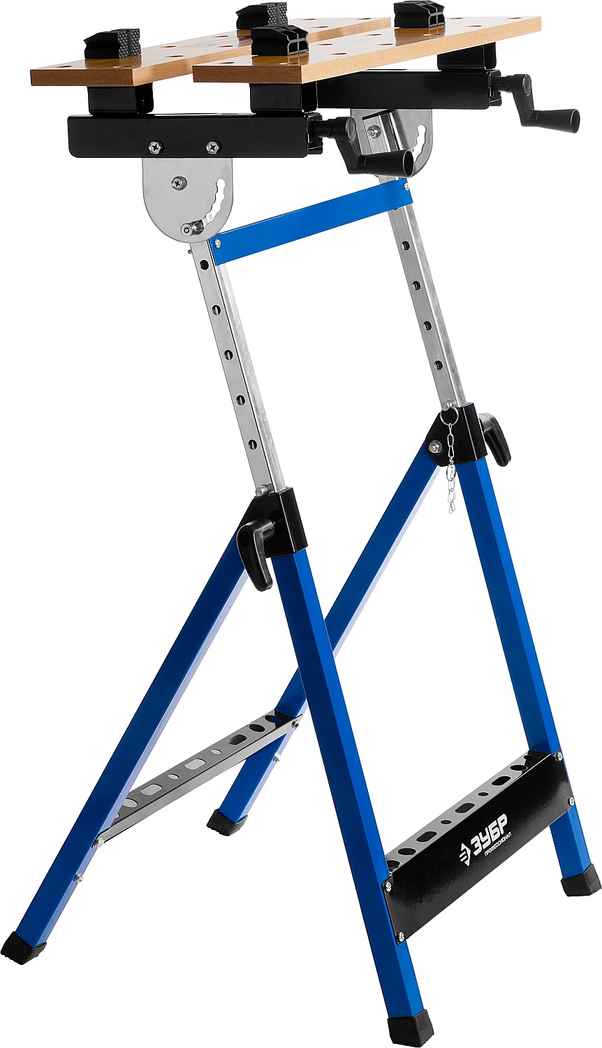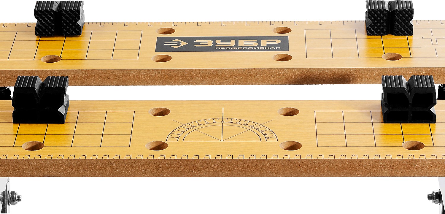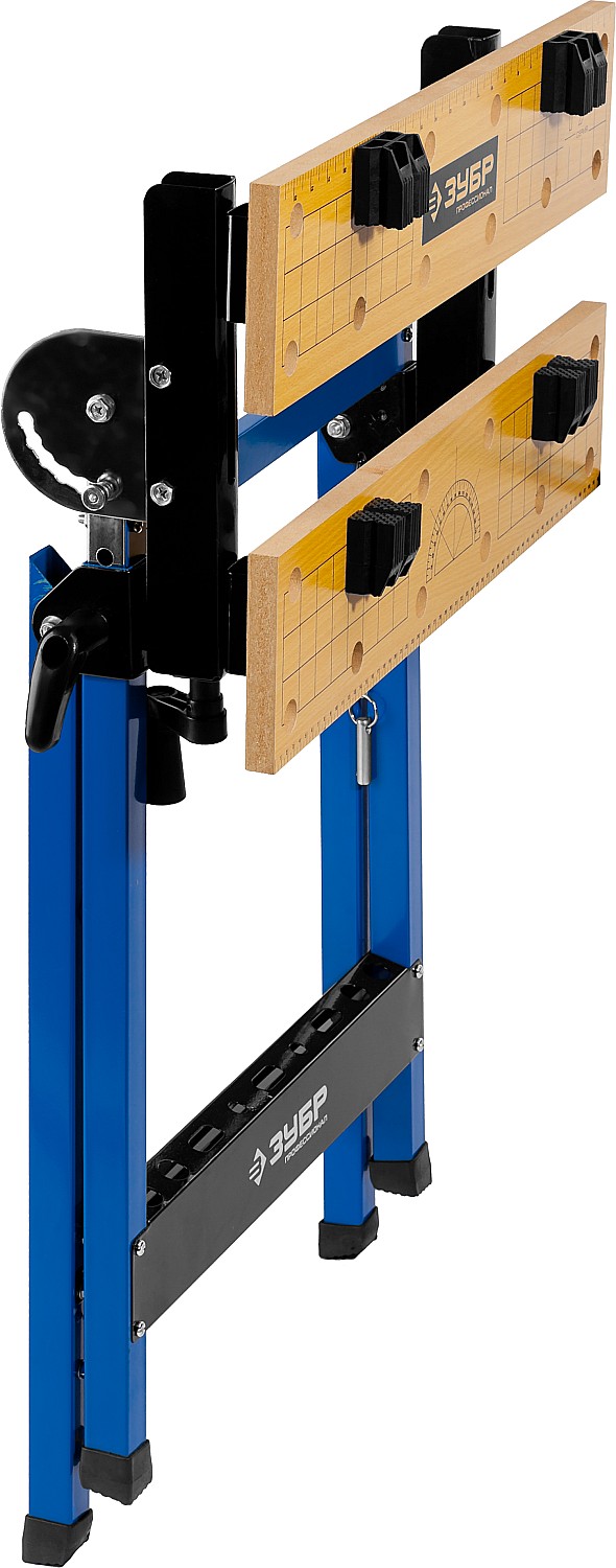 Незаменимый помощник в мастерской, в гараже и в домашних условиях. Предназначен для проведения столярных работ. Благодаря складному каркасу удобен в хранении и транспортировке. Столешница состоит из статической и подвижной части, фиксируемой двумя вращающимися ручками. Для удобства в работе столешница оснащена отверстиями и фиксаторами заготовок любой формы.