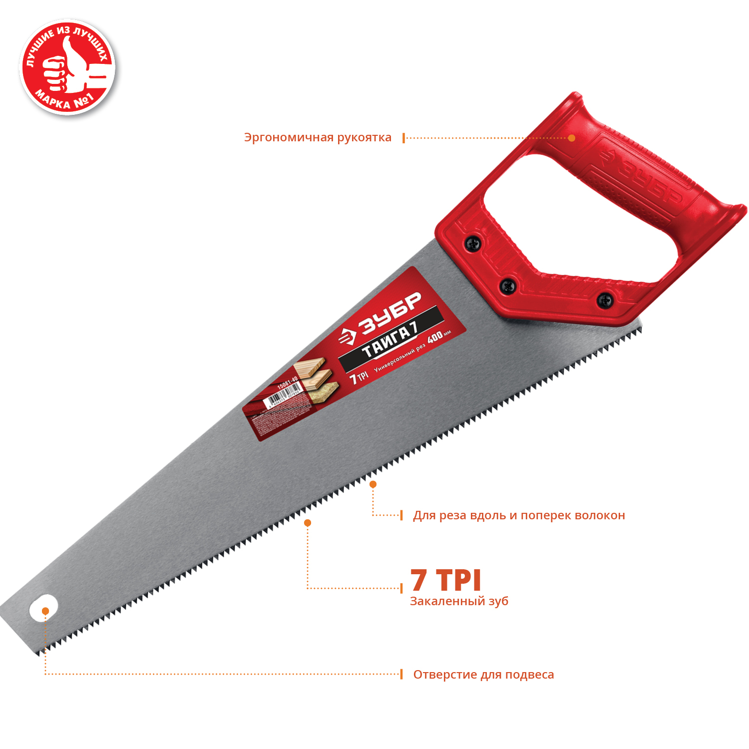 ЗУБР Тайга-7, 400 мм, универсальная ножовка (15081-40)