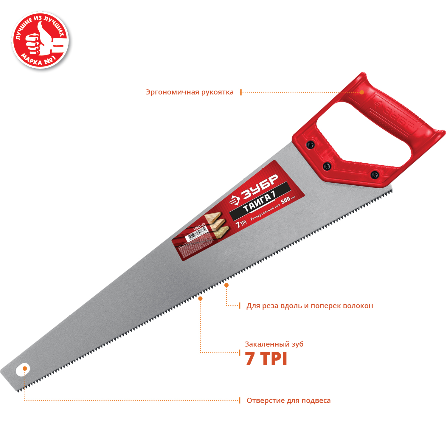 ЗУБР Тайга-7, 500 мм, универсальная ножовка (15081-50)