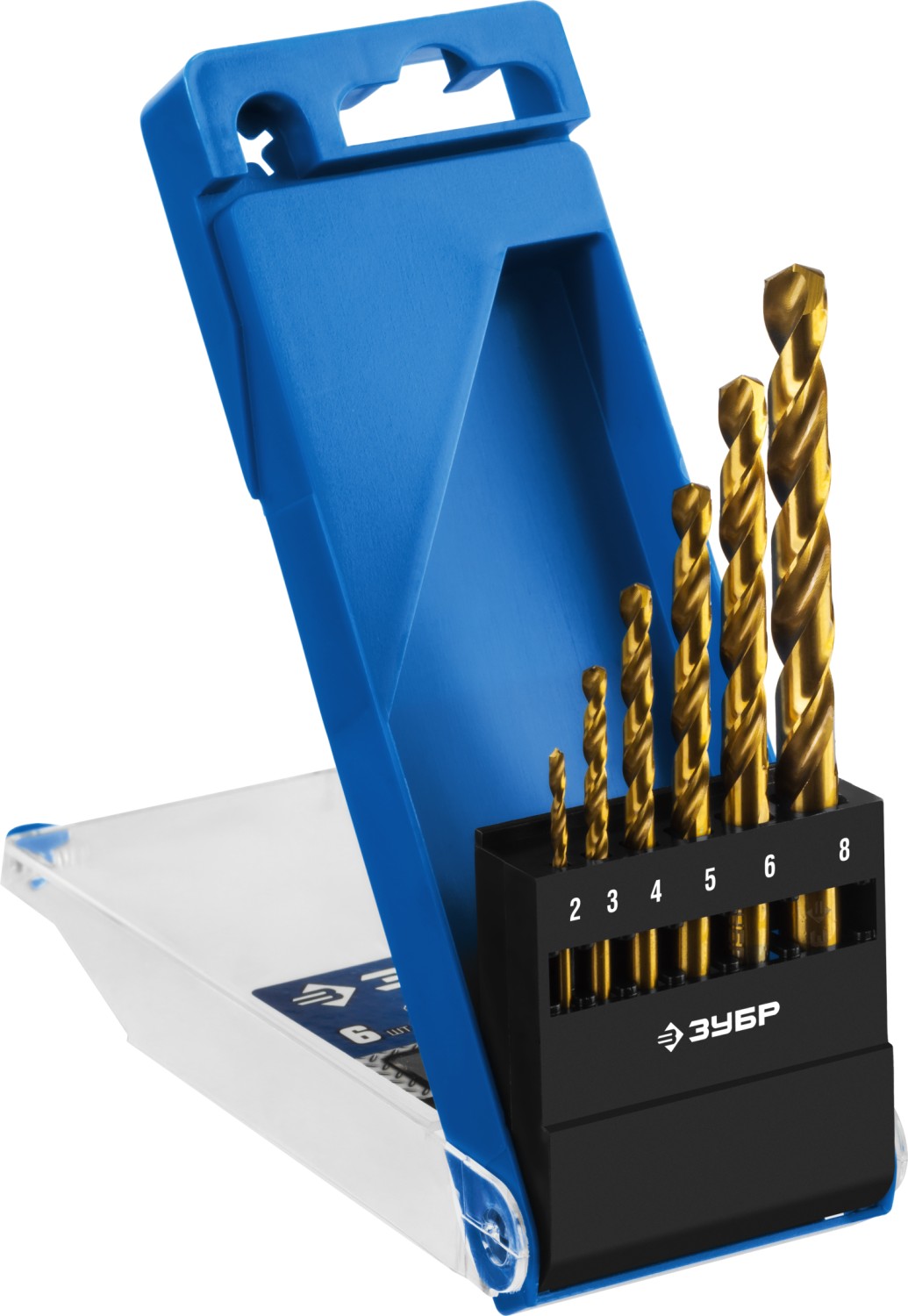 ЗУБР ТИТАН, 6 шт, (2-8 мм), сталь Р6М5, класс А, титановое покрытие, набор сверл по металлу, Профессионал (29615-H6)
